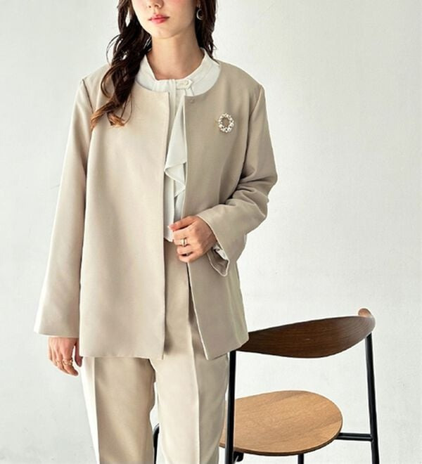 • 【2点セット】ノーカラーフレアーラインジャケットセットアップ3