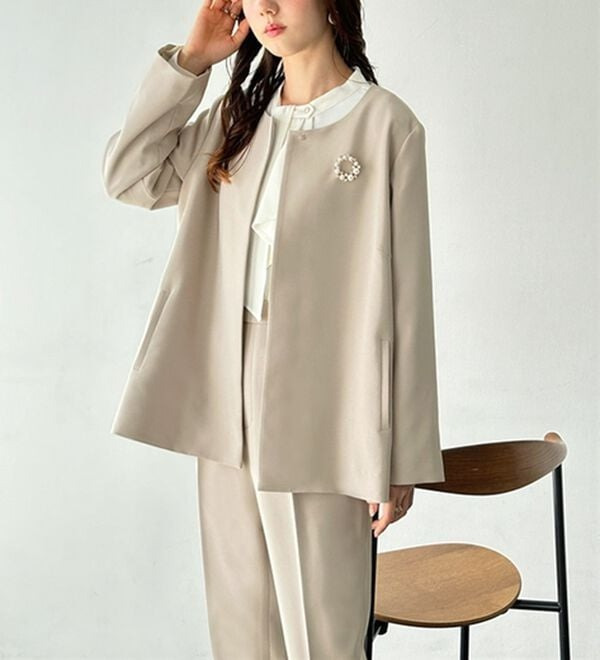 • 【2点セット】ノーカラーフレアーラインジャケットセットアップ20