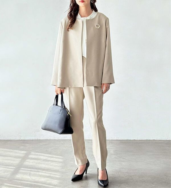 〇すっきりとスタイリッシュなテーパードパンツスーツ