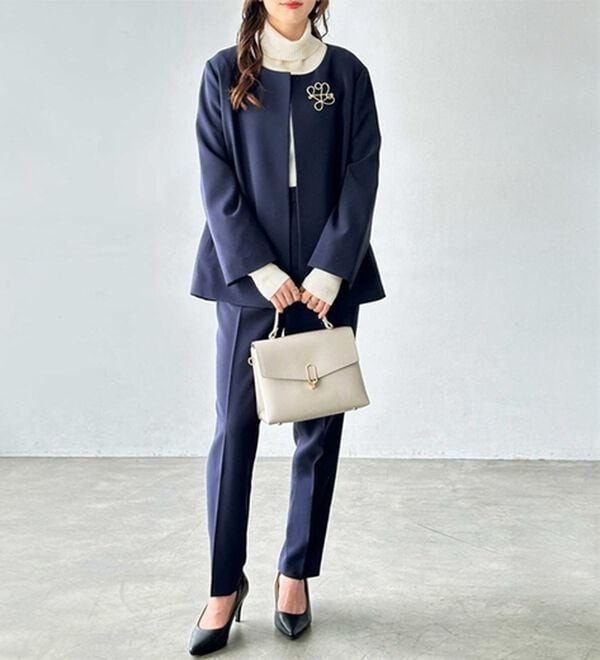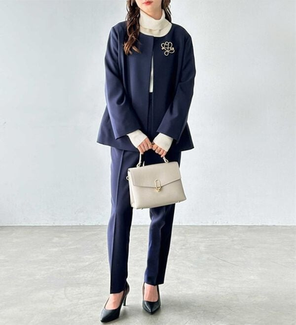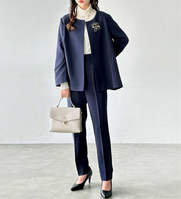 ジャケットとパンツは程よいハリとしなやかさがある、上品なダブルクロス素材を使用。