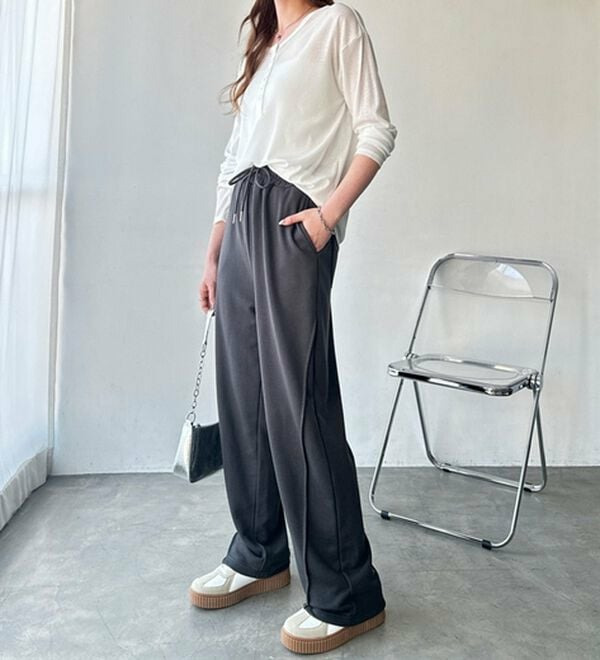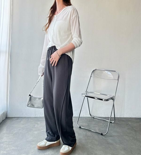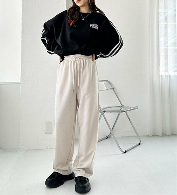 だぼっと穿くのが可愛い!少し長めの丈感なので、厚底のスニーカーやブーツと合わせるのがおすすめです。