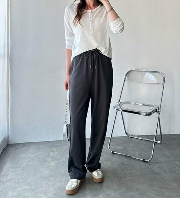 ウエストはゴム&ドロスト紐でストレスフリーな着心地。