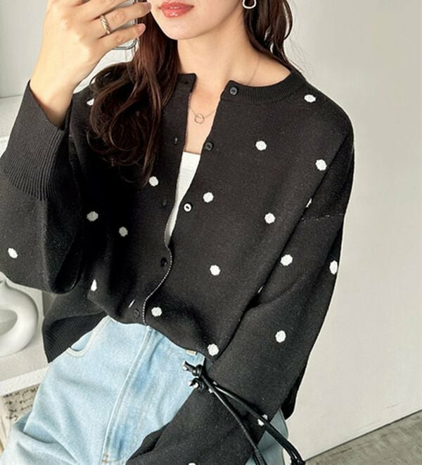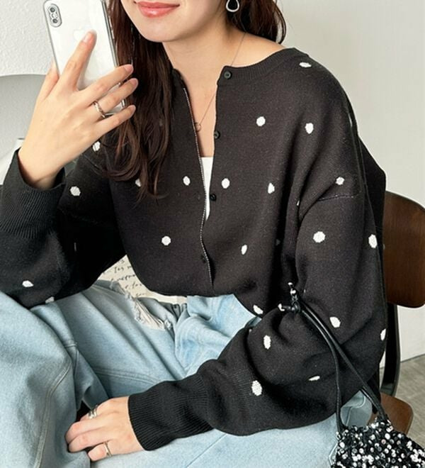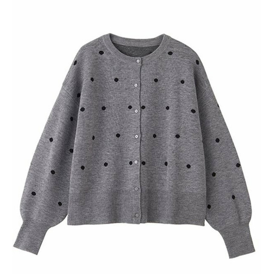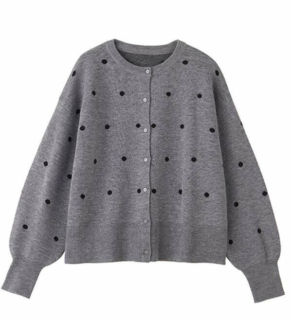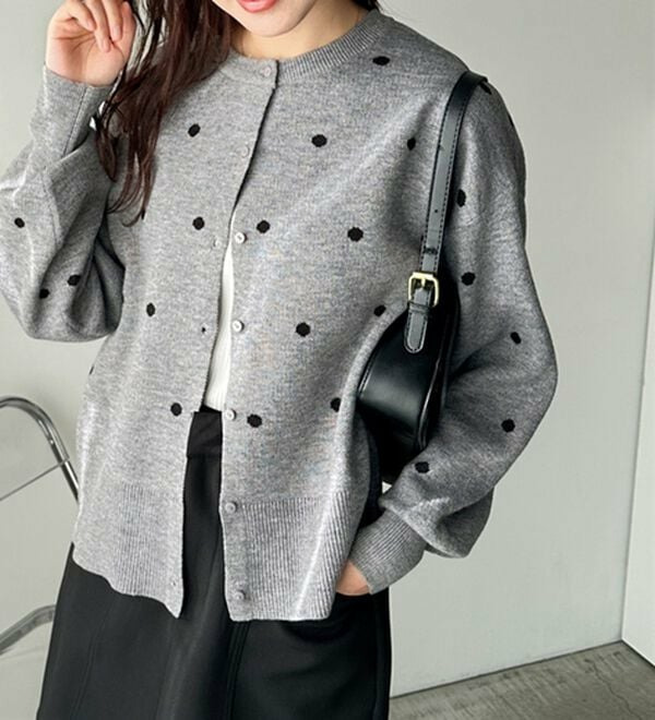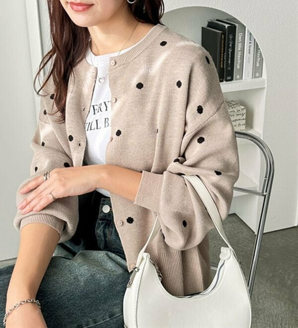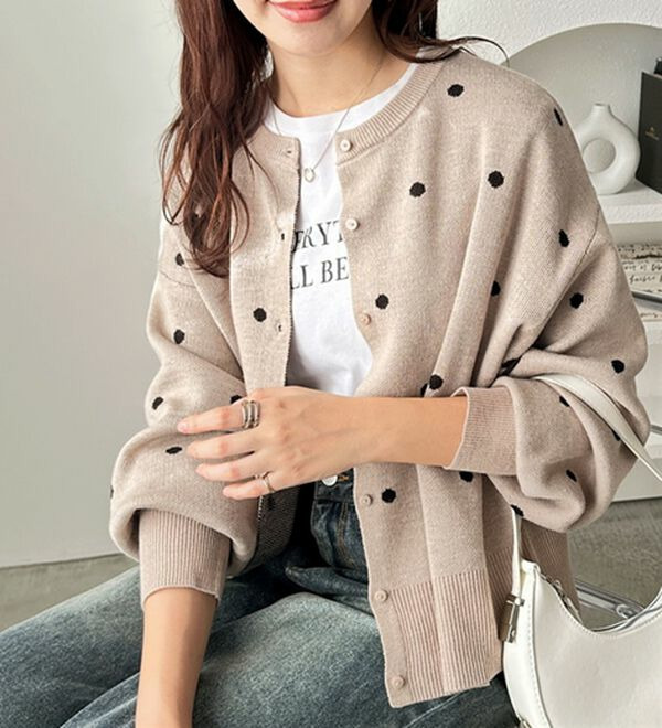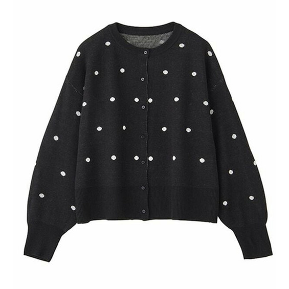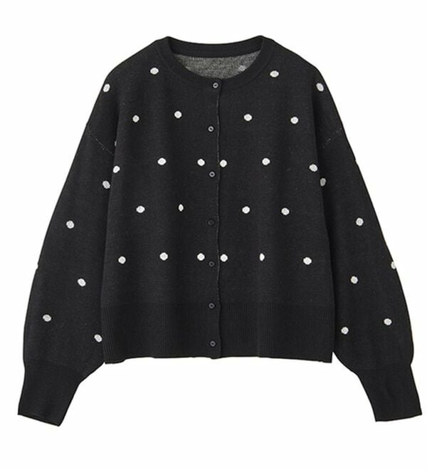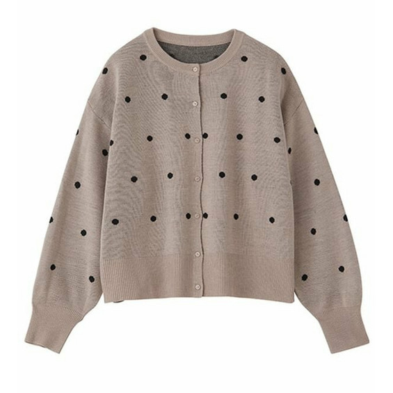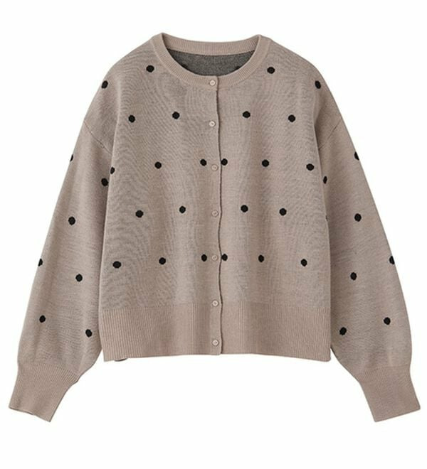甘くなりすぎないほどよいドット柄が可愛いカーディガン。