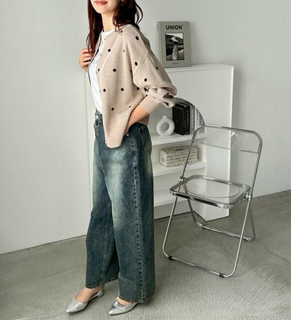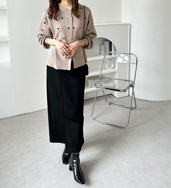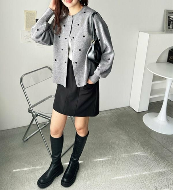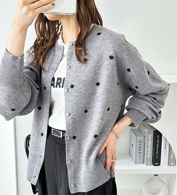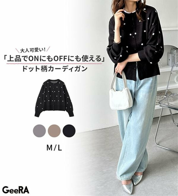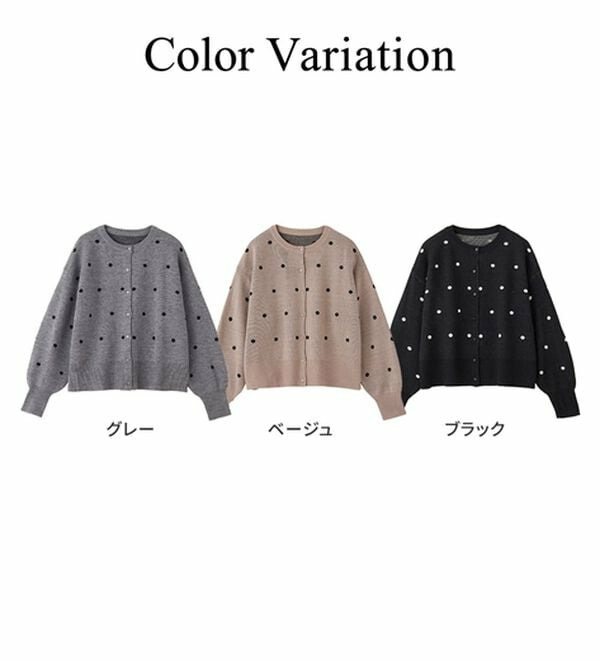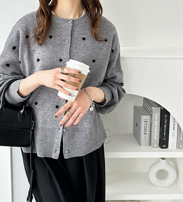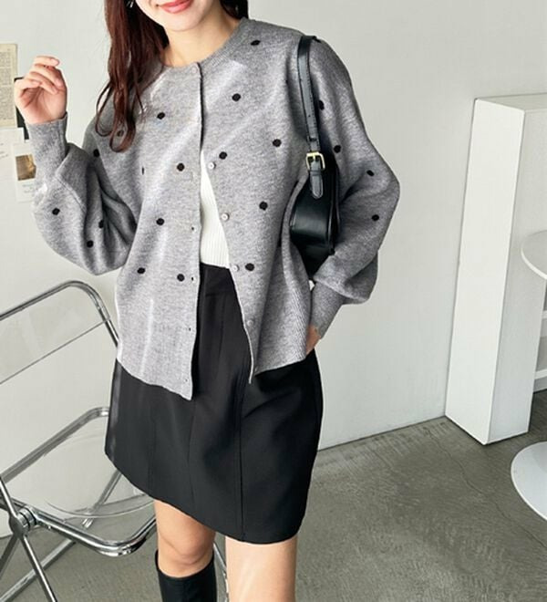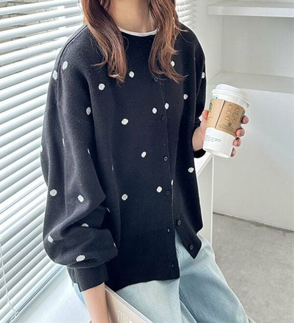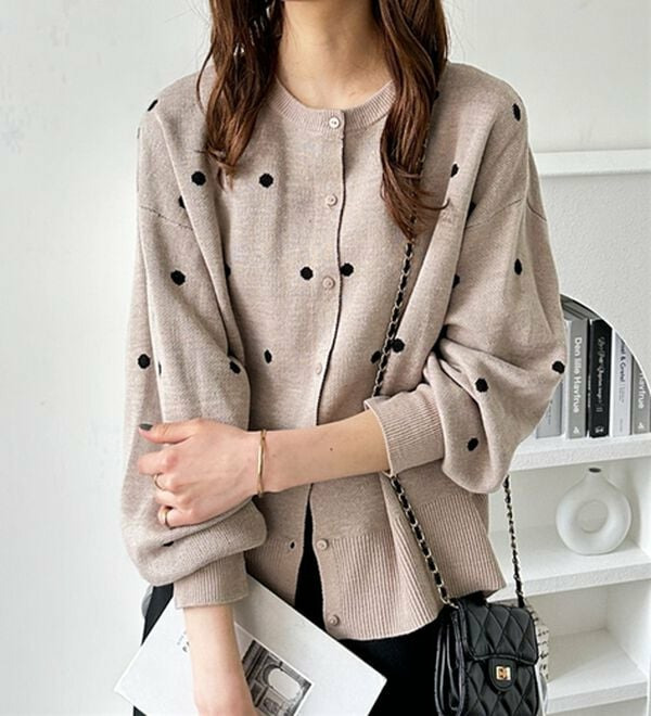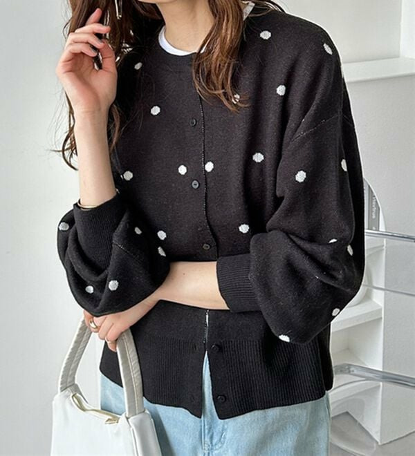 甘くなりすぎないほどよいドット柄が可愛いカーディガン。