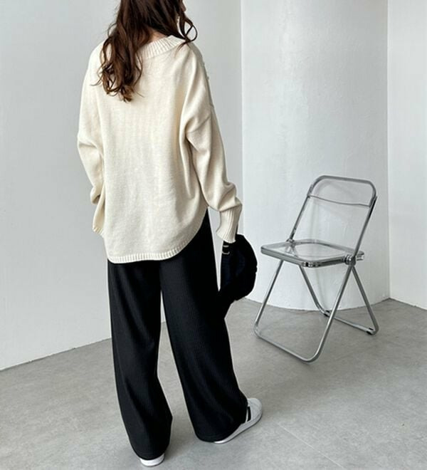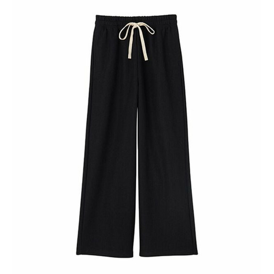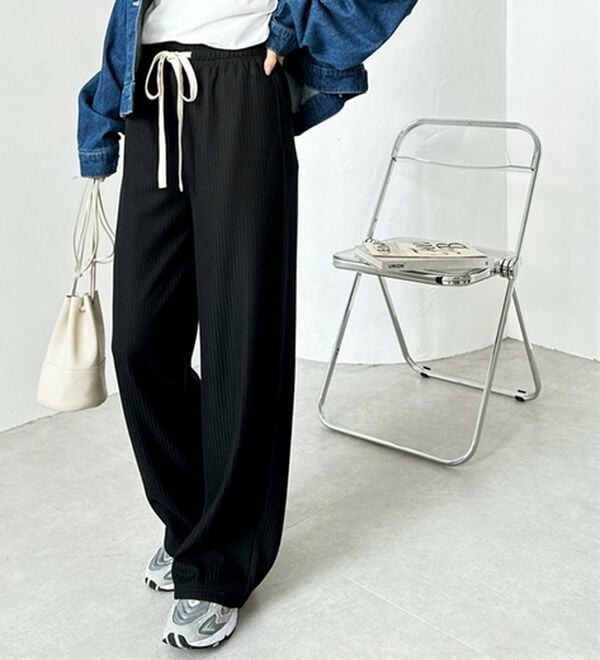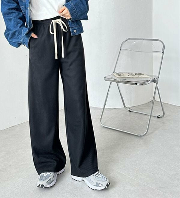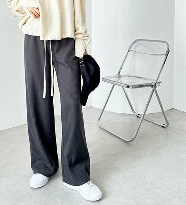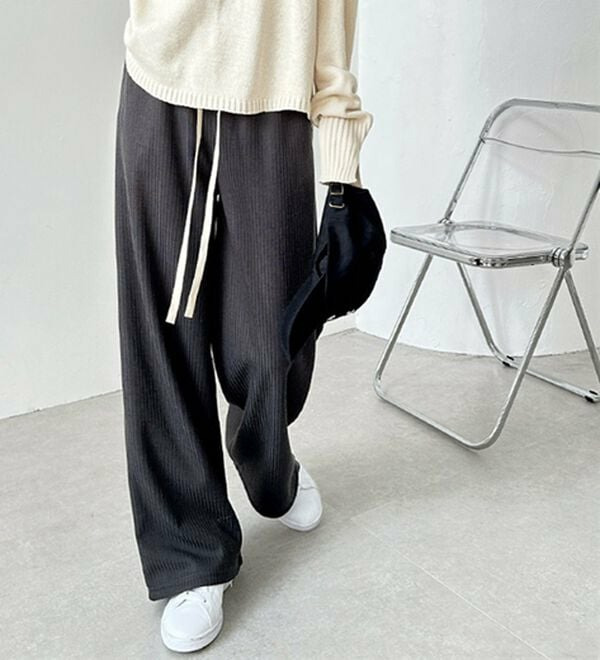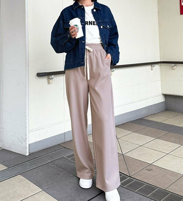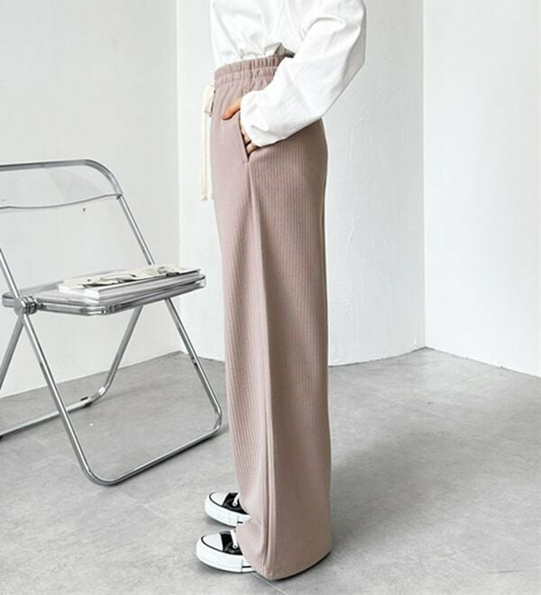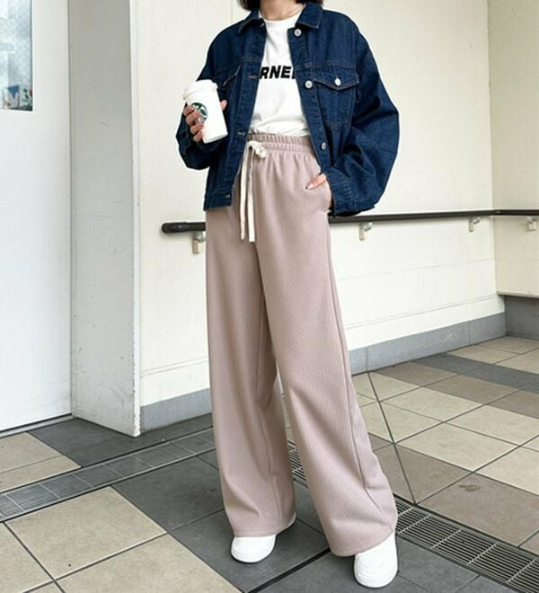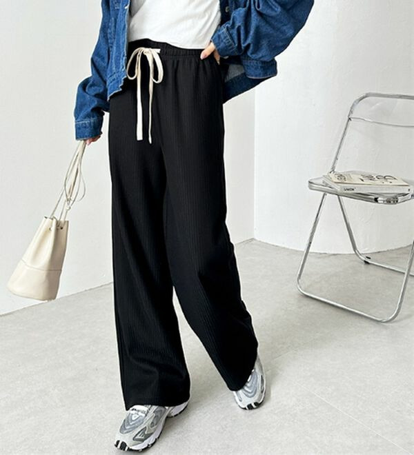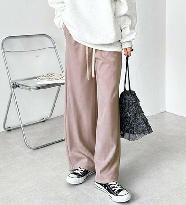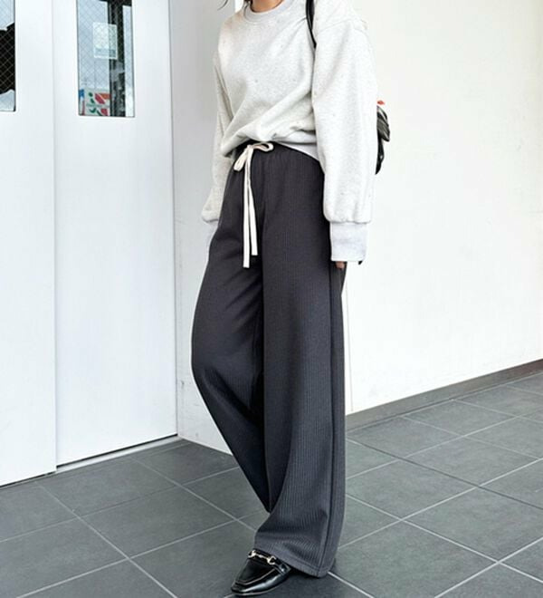 〇縦ラインを強調する太リブ×ストレートワイドシルエットで美脚見え!