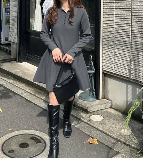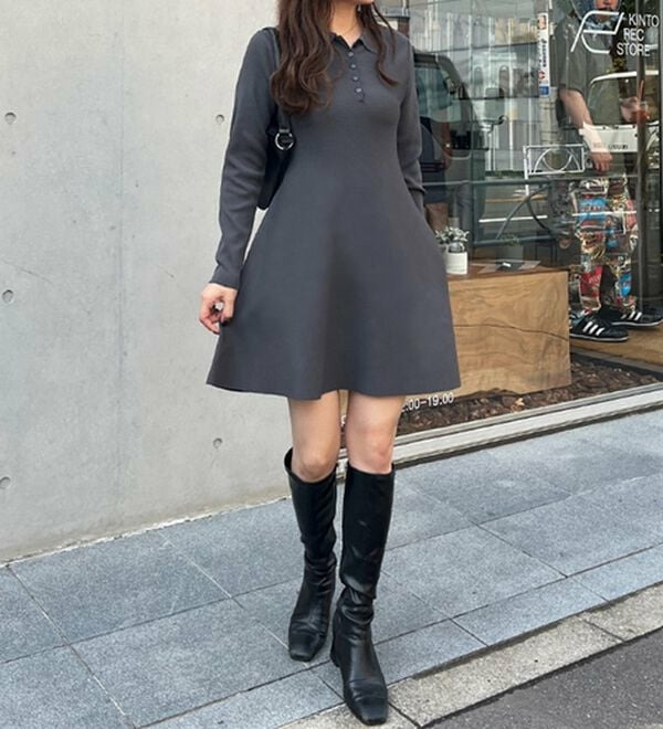 ペプラムニットミニワンピース