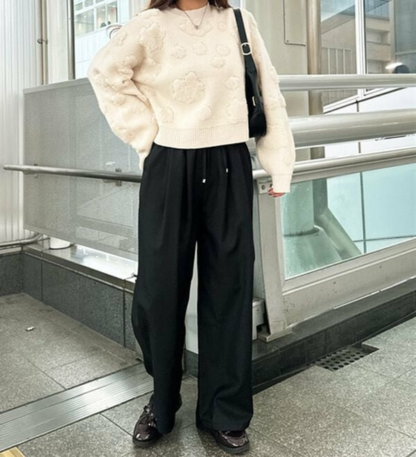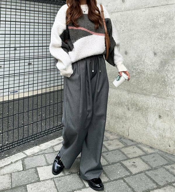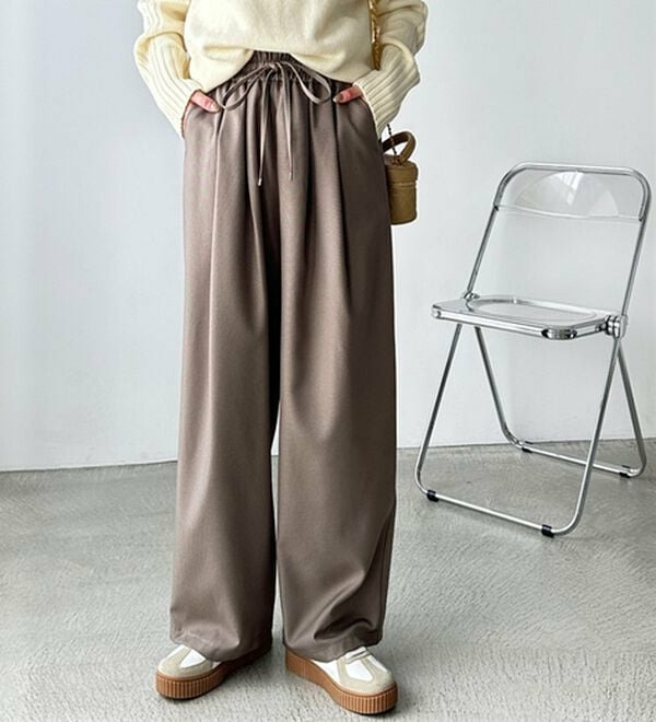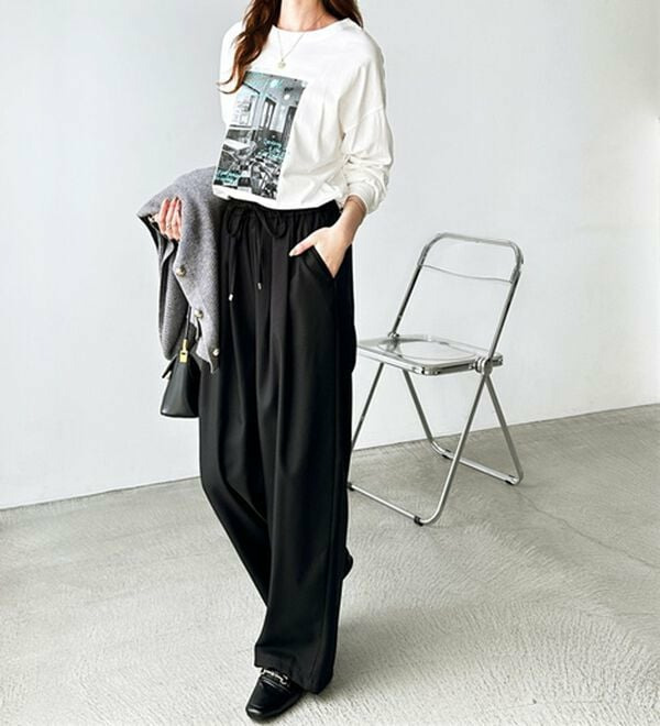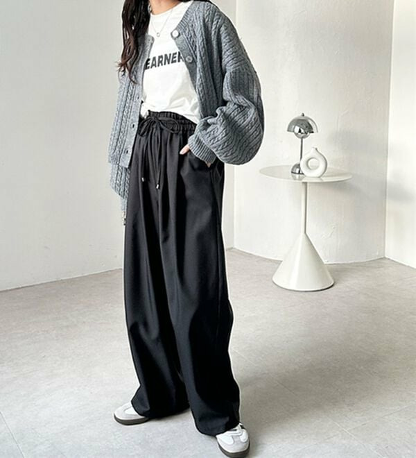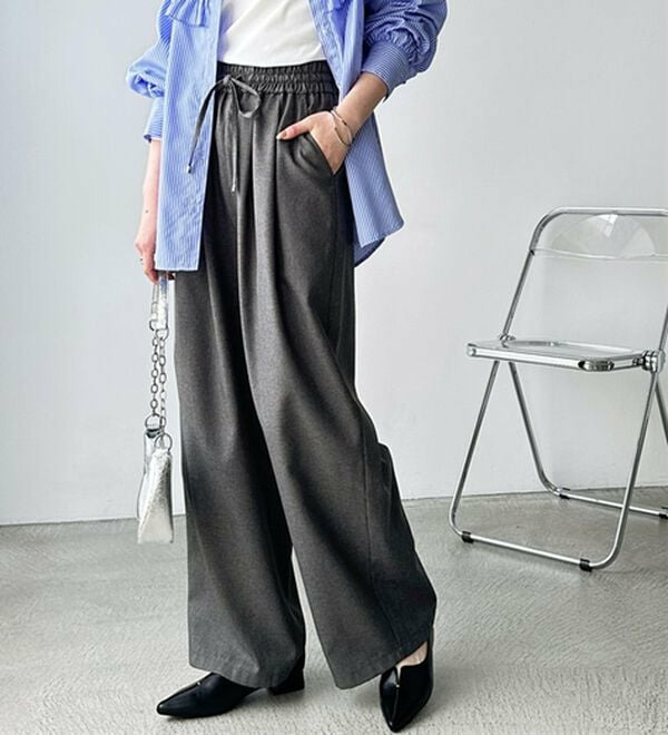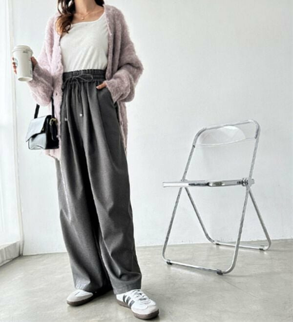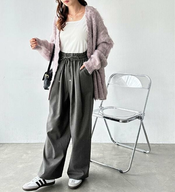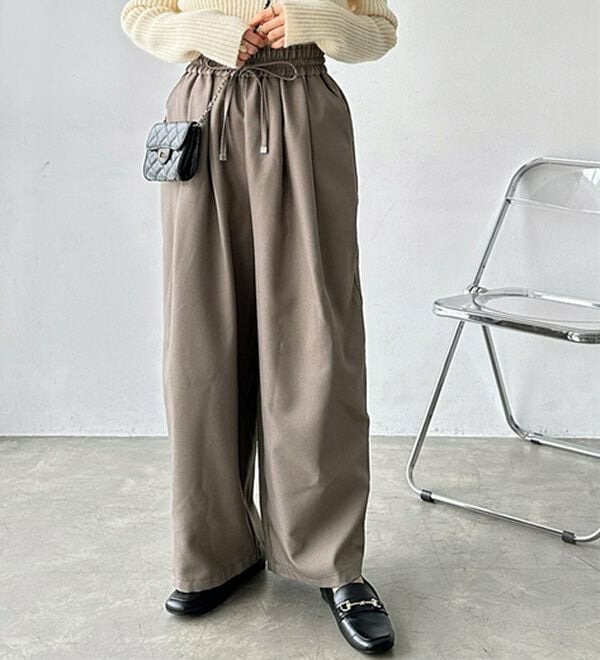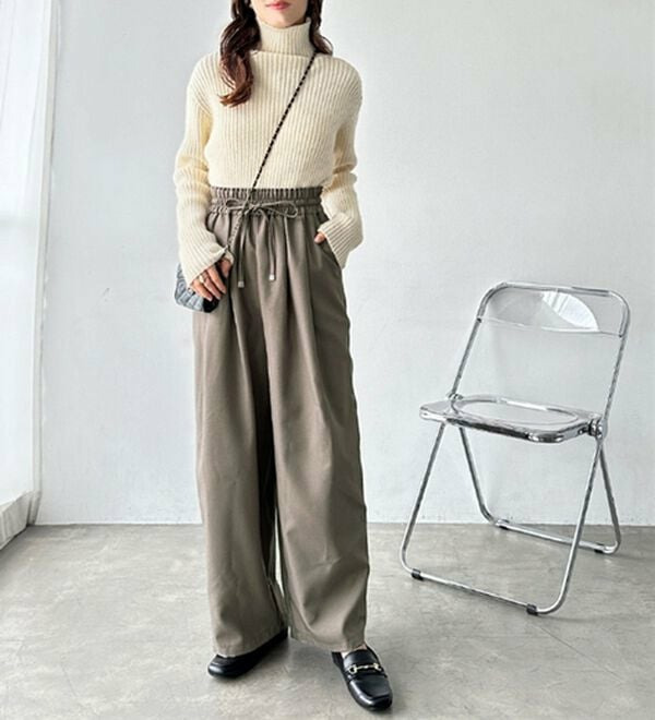 きれいめにもカジュアルにも対応する、上品なイージーパンツ