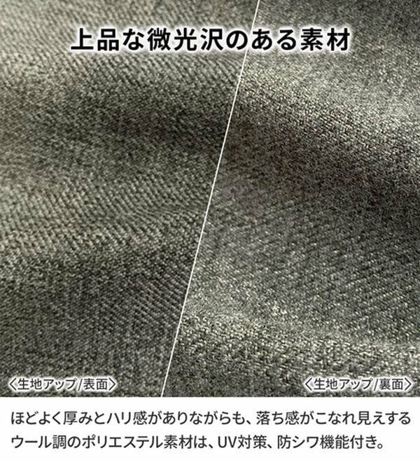 ほどよく厚みとハリ感がありながらも、落ち感がこなれ見えするウール調のポリエステル素材。