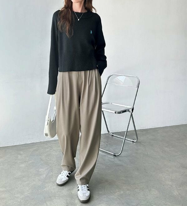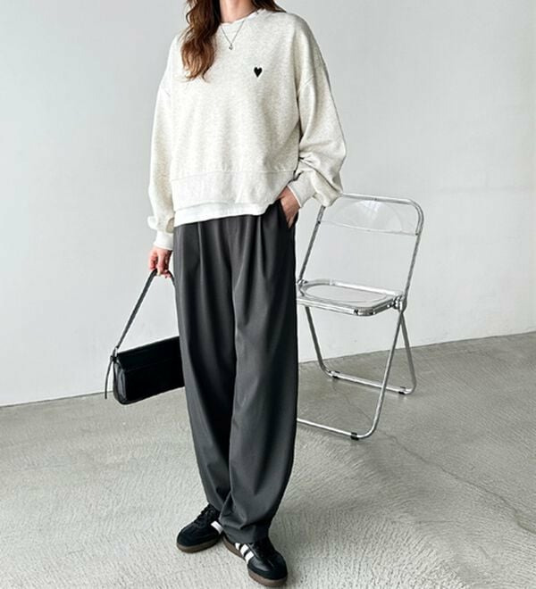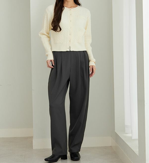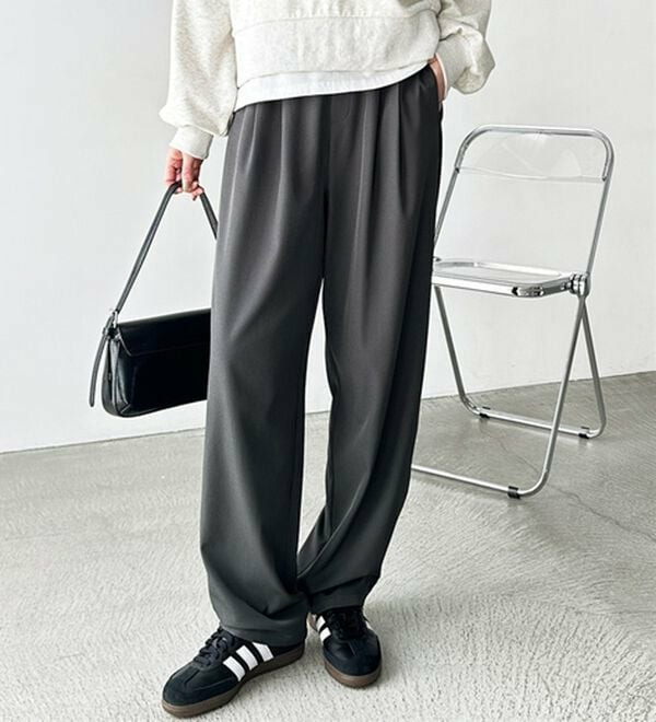 フロントの2タック&ほんのりカーブシルエットで、こなれたニュアンスを演出するイージーパンツです。