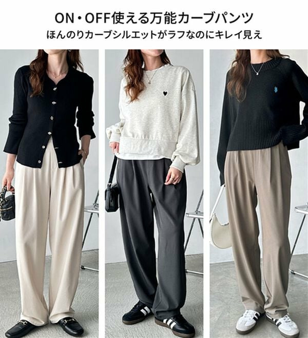 【L-XL展開/新色追加】夏 にぴったり!オンオフ着られるカーブパンツ