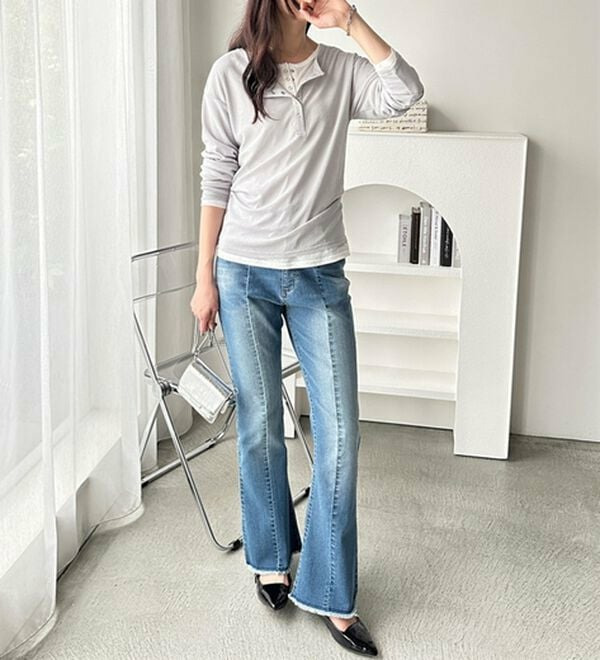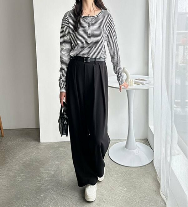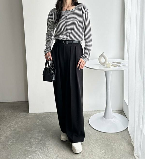 シンプルに今っぽいデニムやスラックス、カーブパンツにウエストインするコーデも◎