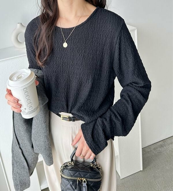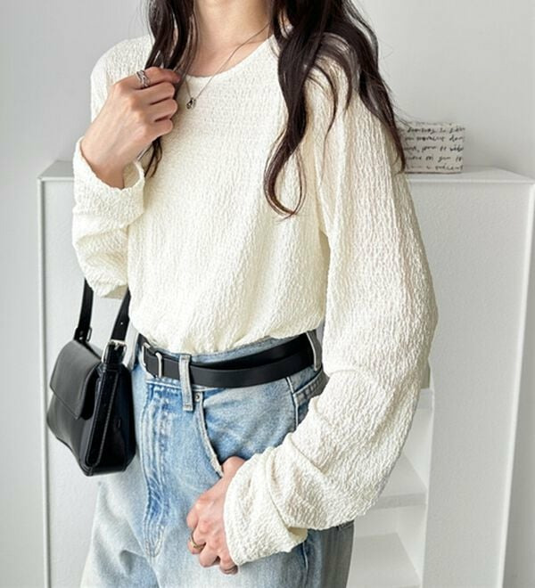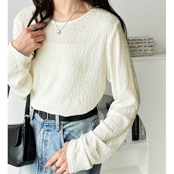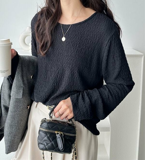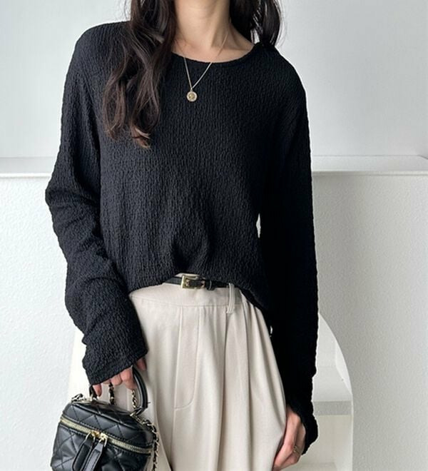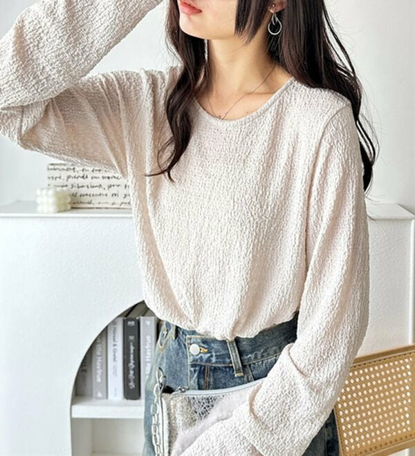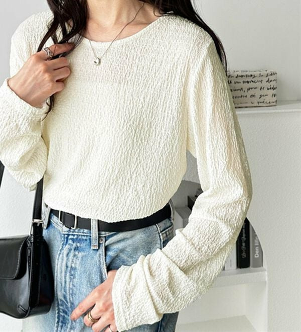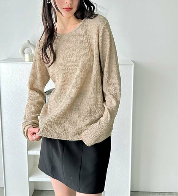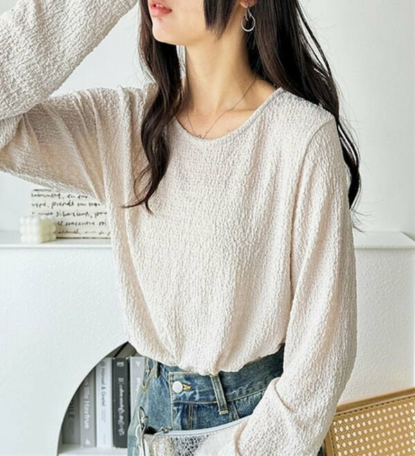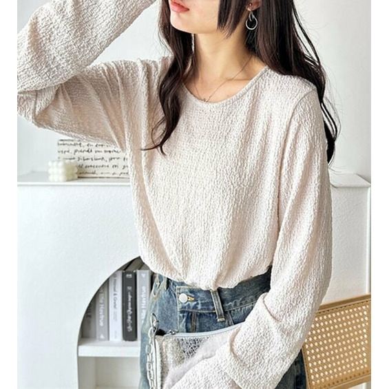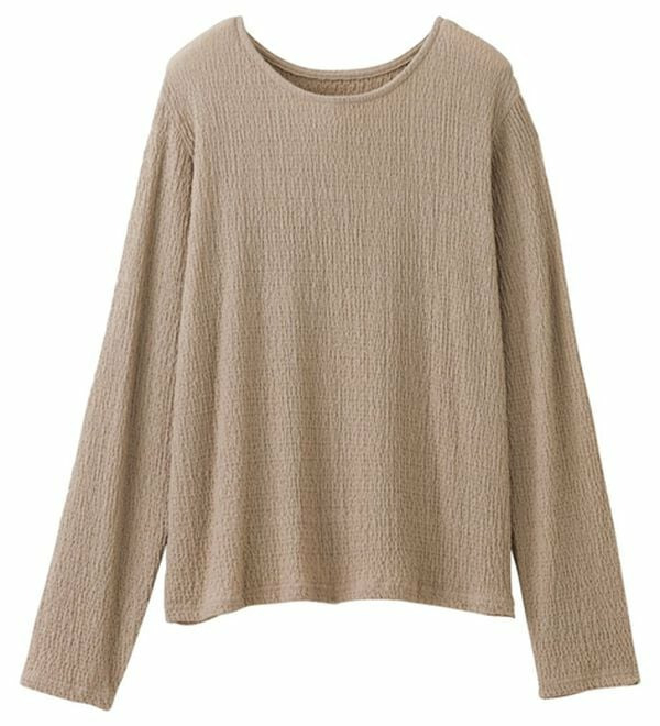 凹凸感のあるシャーリングジャガード素材が今年らしいシンプルなプルオーバー。