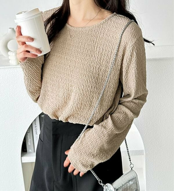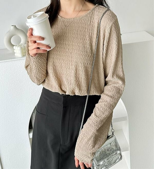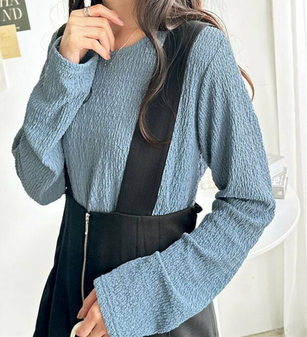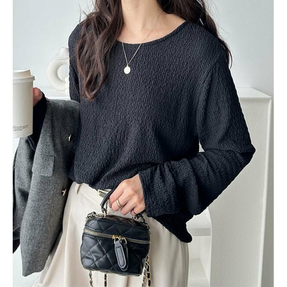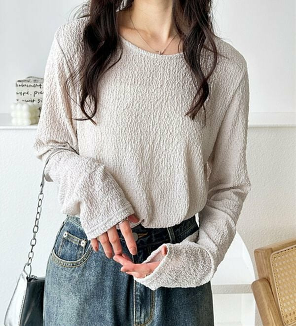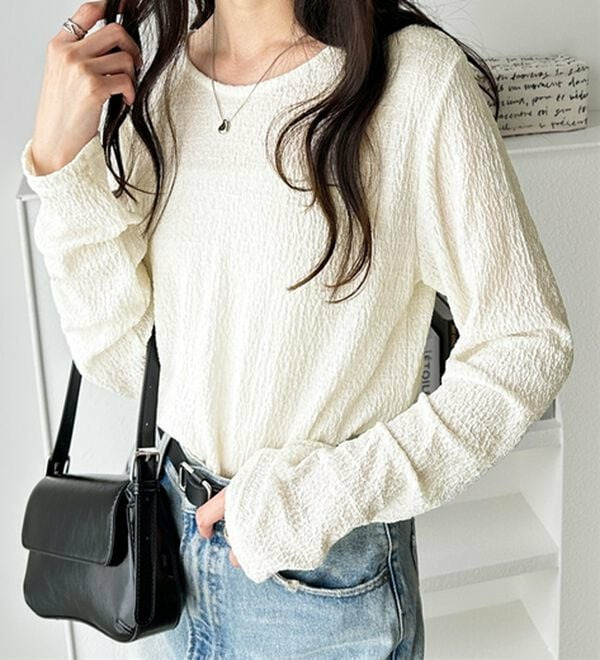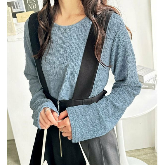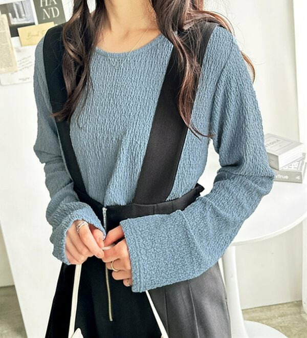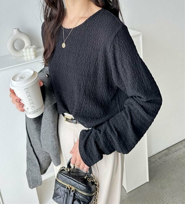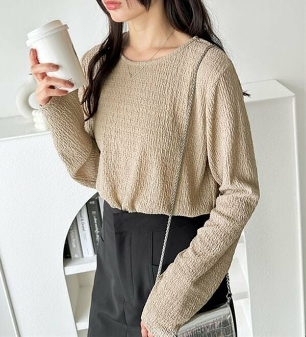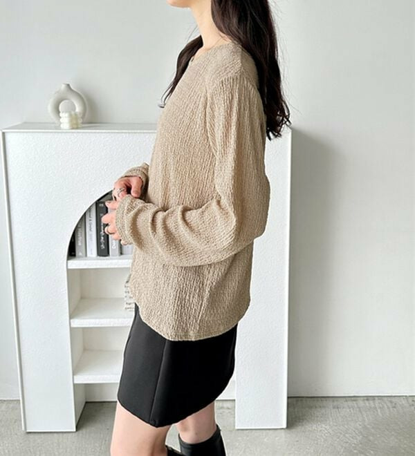 凹凸感のあるシャーリングジャガード素材が今年らしいシンプルなプルオーバー。