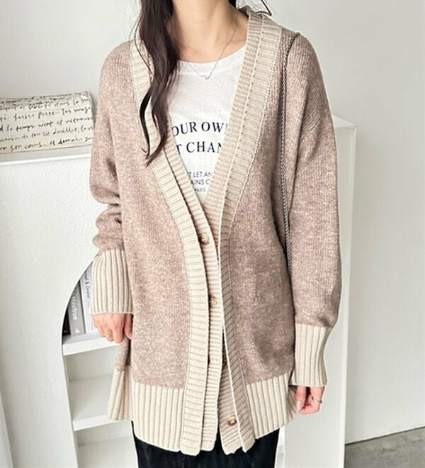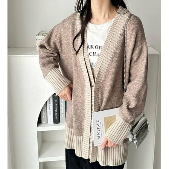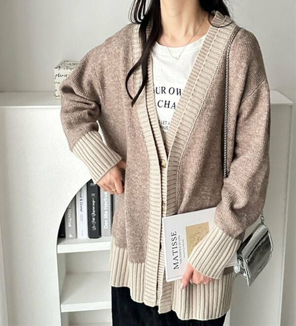 《FIRSTMOODコラボ》ウールライク配色Vネックカーディガン