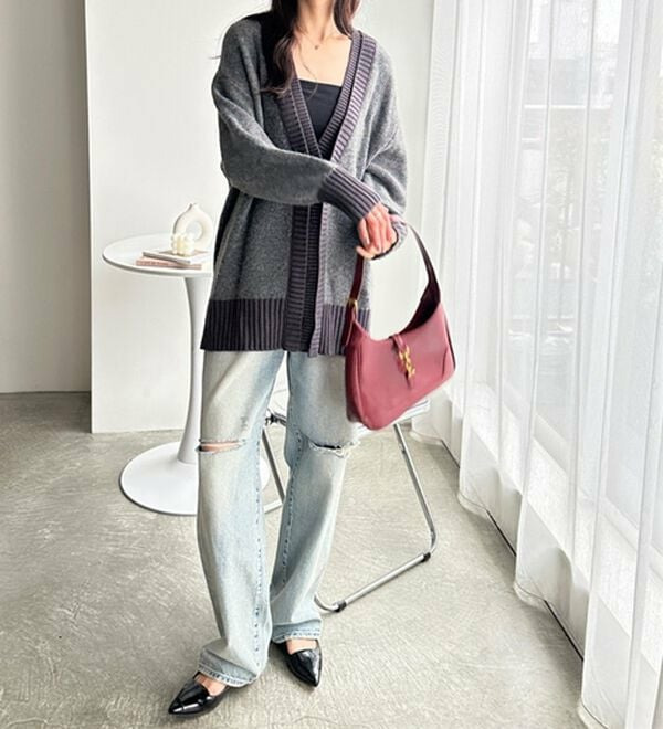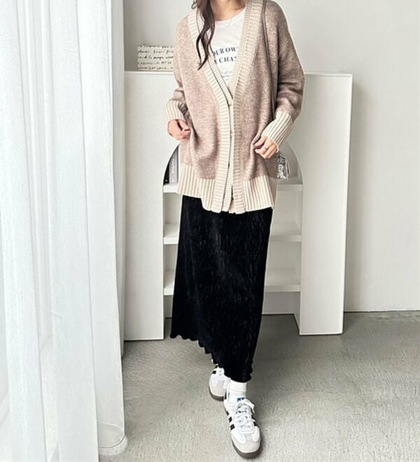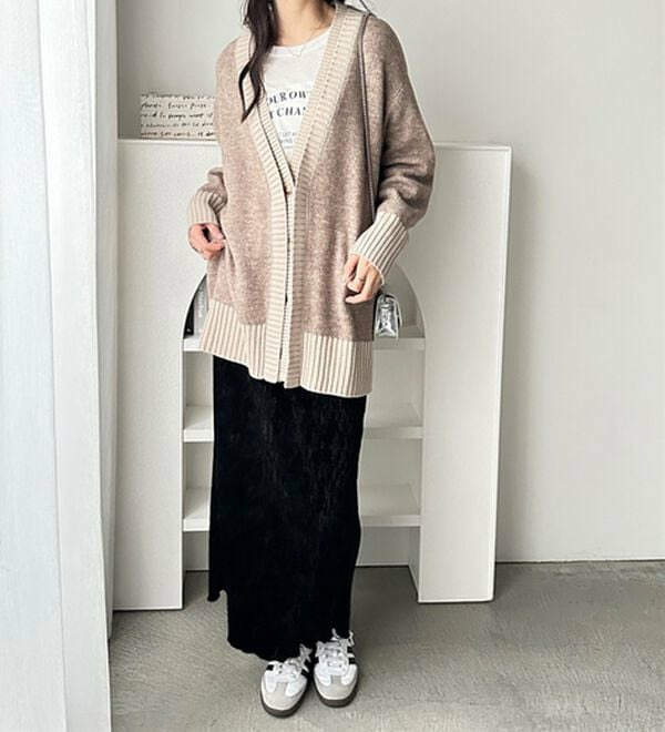 デザイン性がありながらもサイズやシルエットはベーシックなゆったりカーディガンなので、