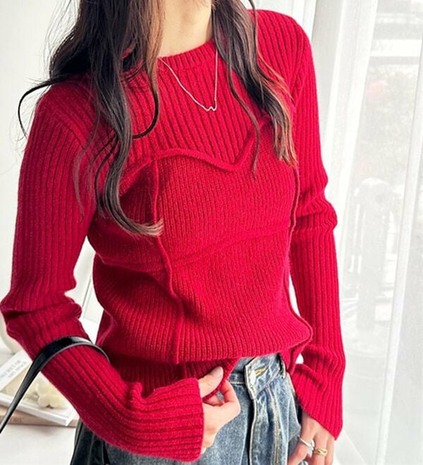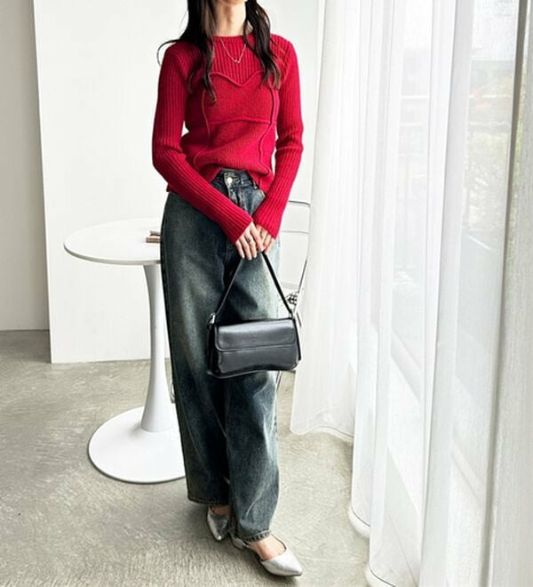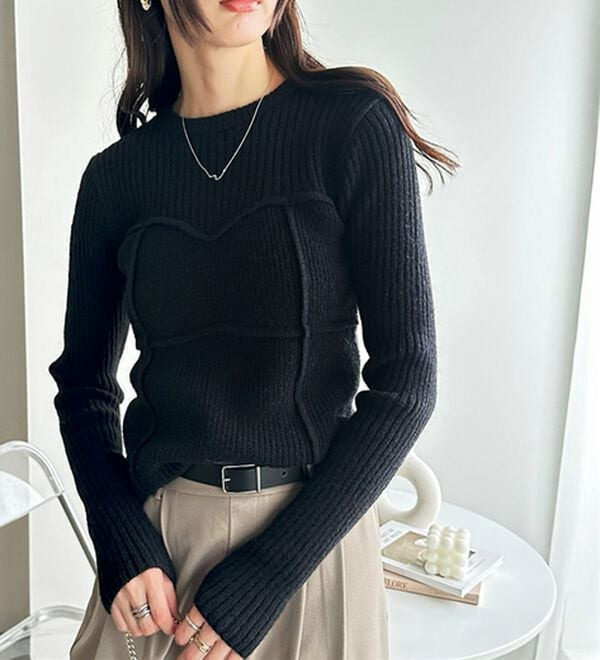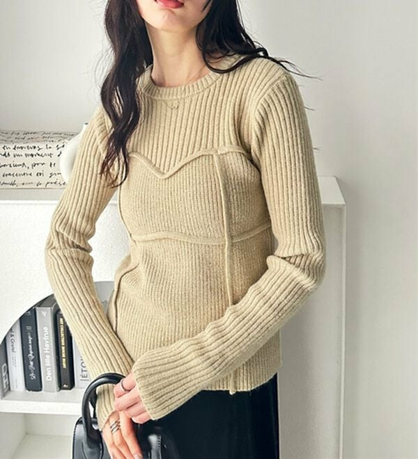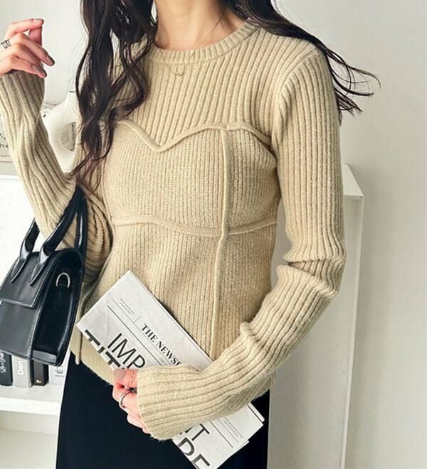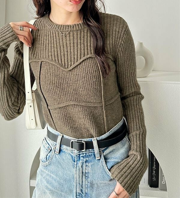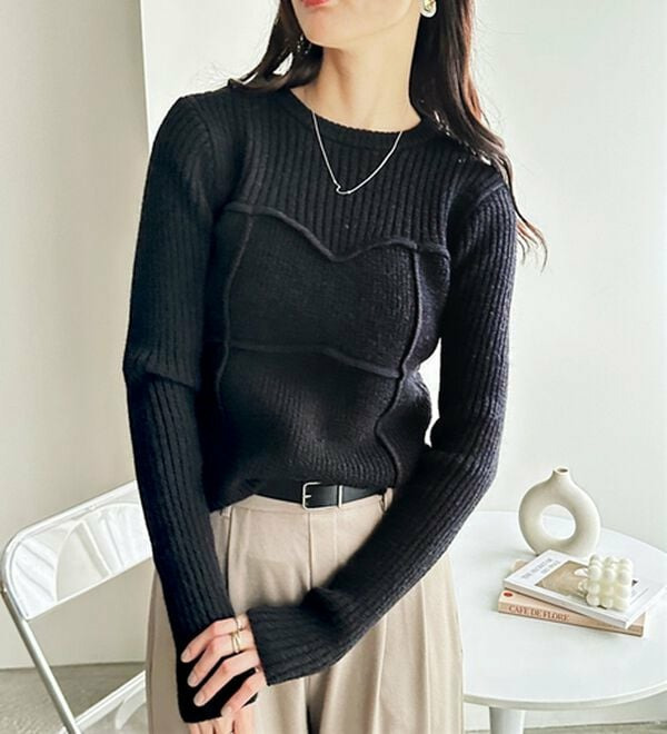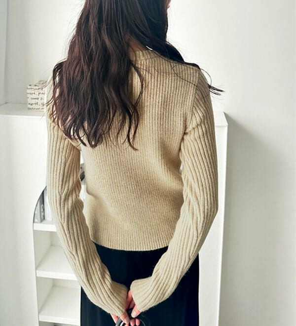 ほどよいフィット感で着やすいのに加えて、縦ラインを強調するリブ編みですっきり見えするのも嬉しい。