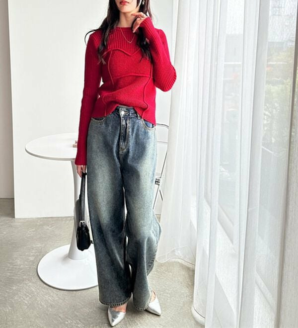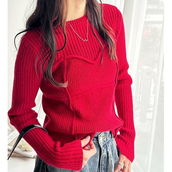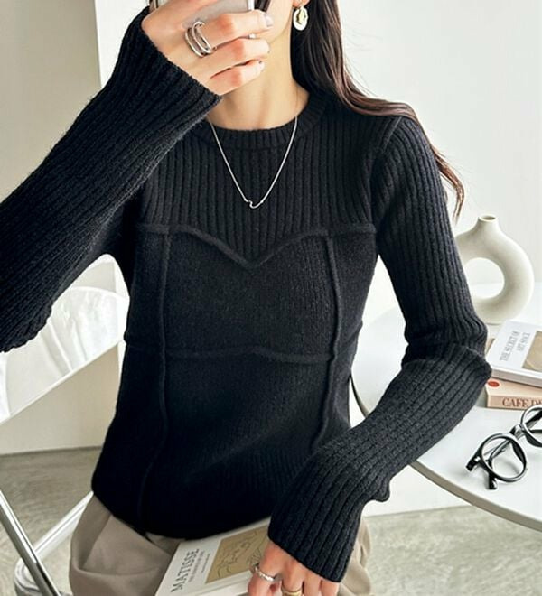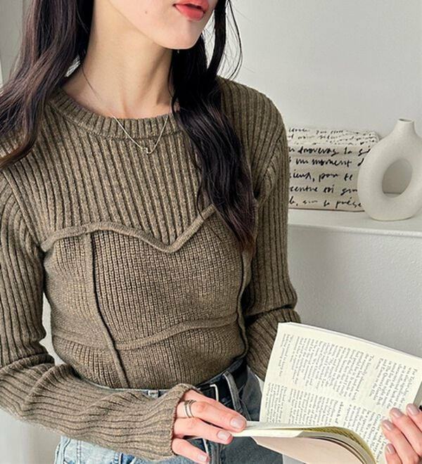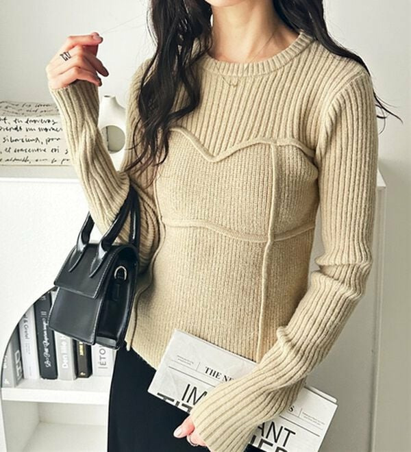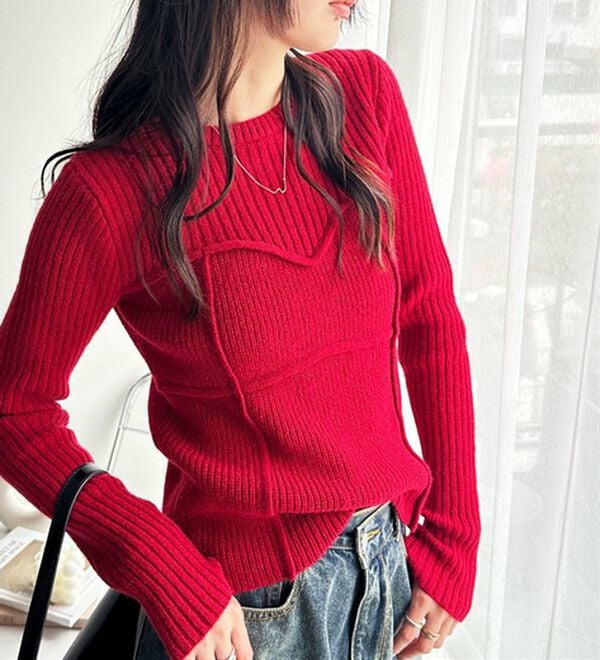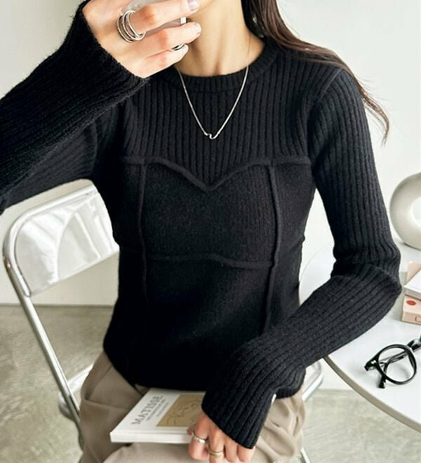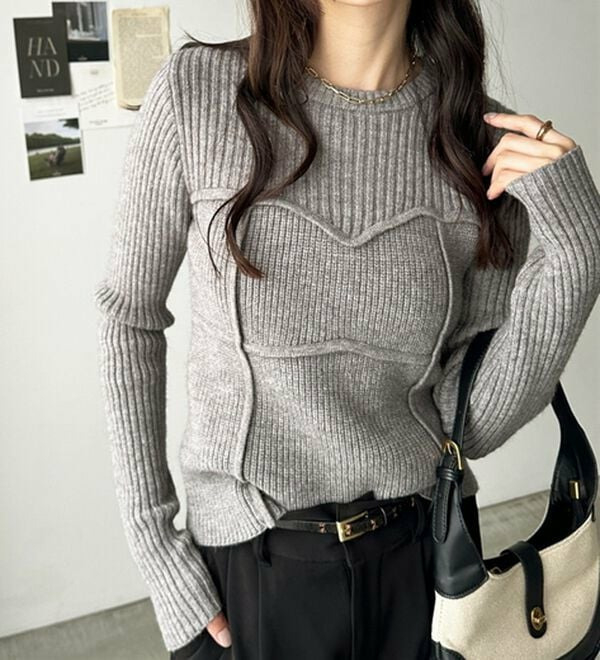ほどよいフィット感で着やすいのに加えて、縦ラインを強調するリブ編みですっきり見えするのも嬉しい。