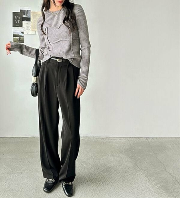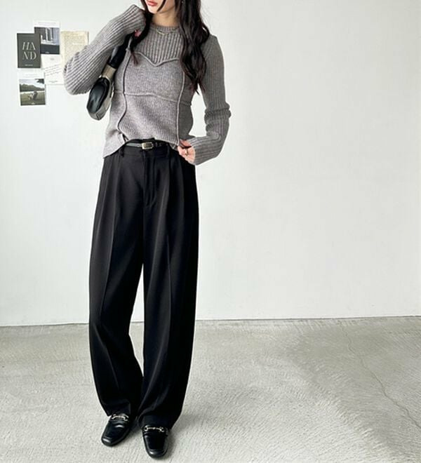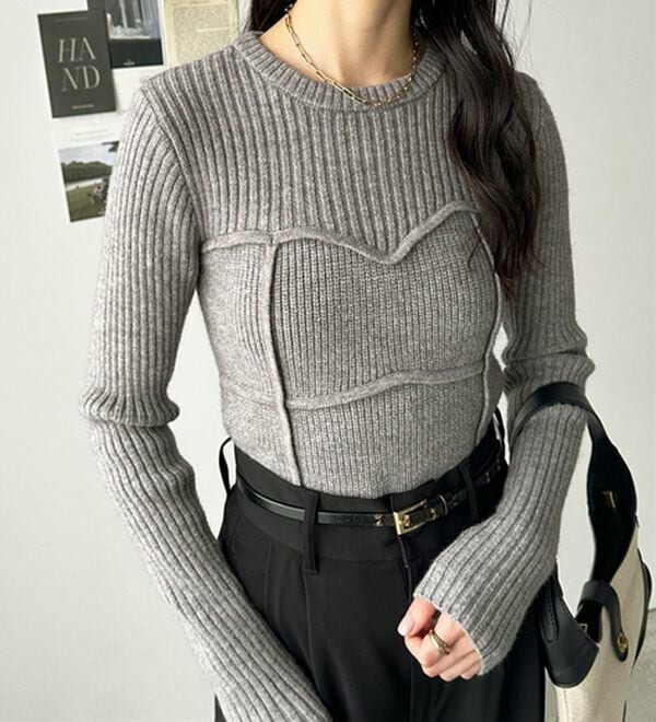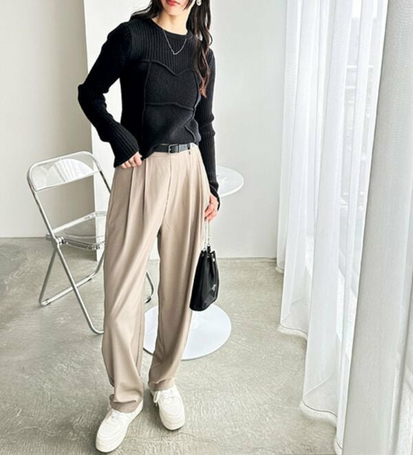 ○ほどよいフィット感とリブ編みで、華奢見え!