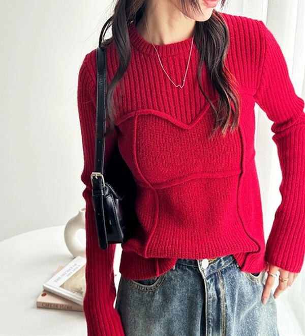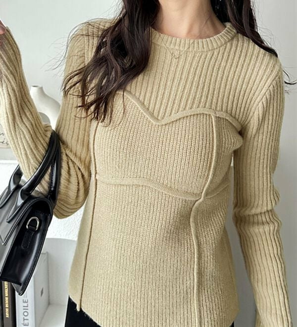 バストラインも編地変化でメリハリを出し、女性らしくスタイルアップ見えするデザインに!