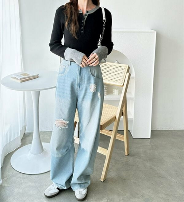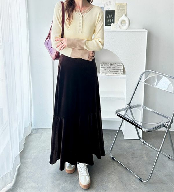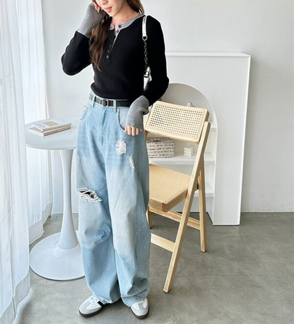 配色使いがアクセントに!デニム合わせはもちろん、ほどよいフィット感でワイドシルエットボトムとも相性抜群です。