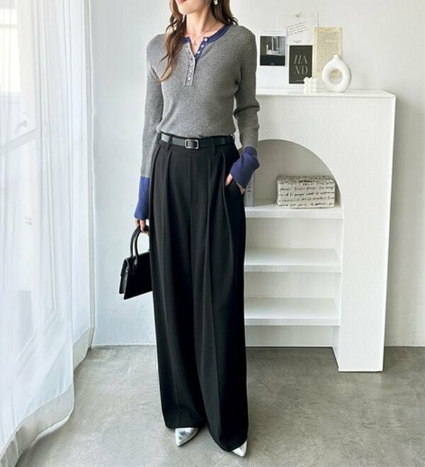 さらっと1枚で着て、様になるヘンリーネック2WAYニット