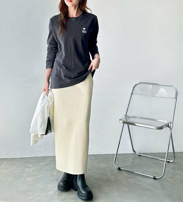 オーバーサイズロンT・スウェット・ゆるニットにスニーカーで、抜け感のあるキレイめカジュアルコーデに。