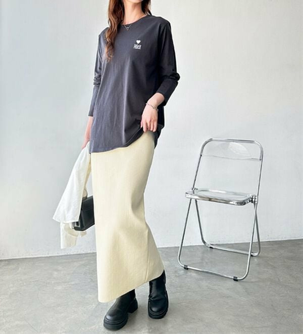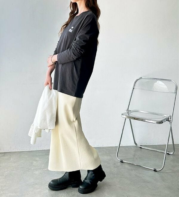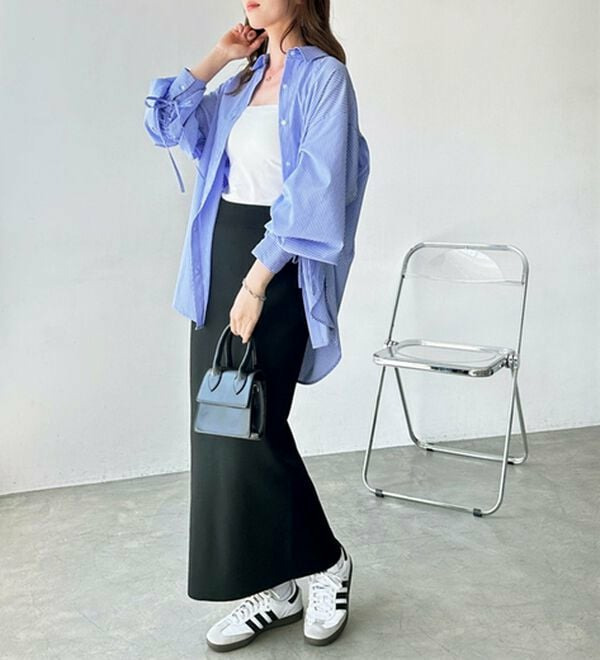 ブラウスやジャケットと合わせて、きちんと感のある着こなしにも◎。