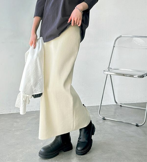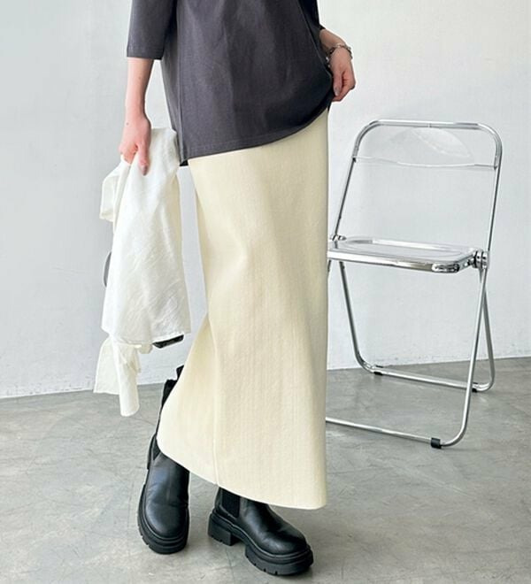 ほどよく身体にフィットして、キレイなシルエットを演出するナロースカート。