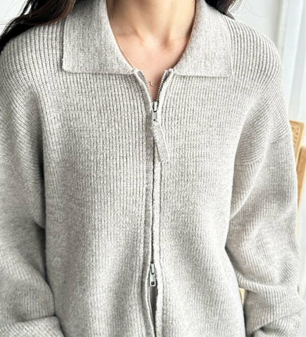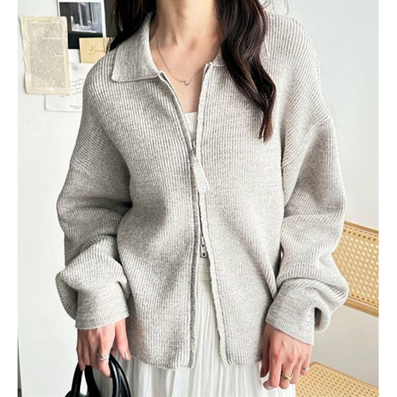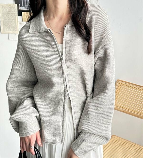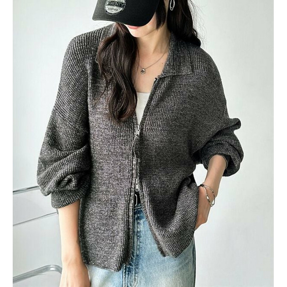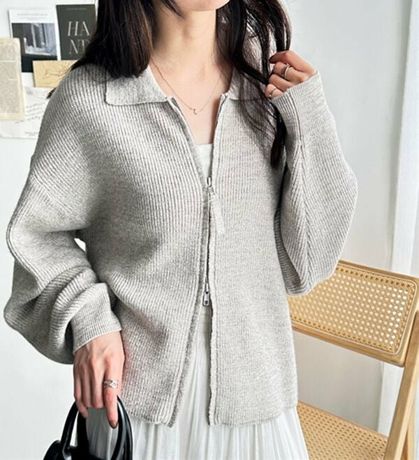 今っぽいポロ衿デザインがアクセントになったニットカーディガン。