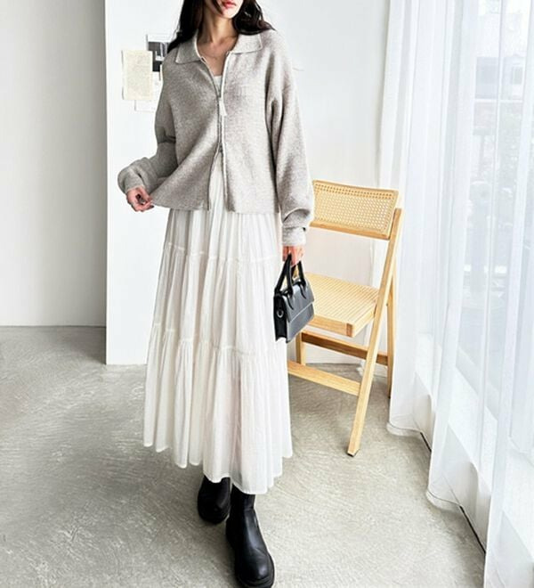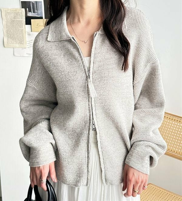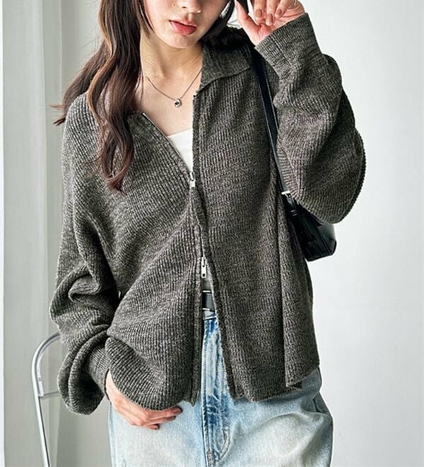 ジッパーを閉めてポロニットとして着用するのはもちろん、開けてカーデガンやアウターとしても装えます。