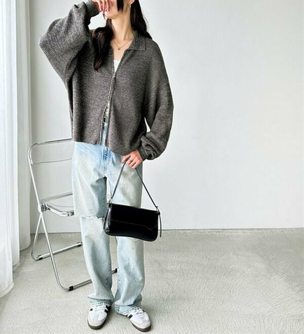 シンプルなカーディガンタイプのニットは着こなしの幅が広く、カジュアル・キレイめ・大人っぽくなど、様々な着こなしが叶います。
