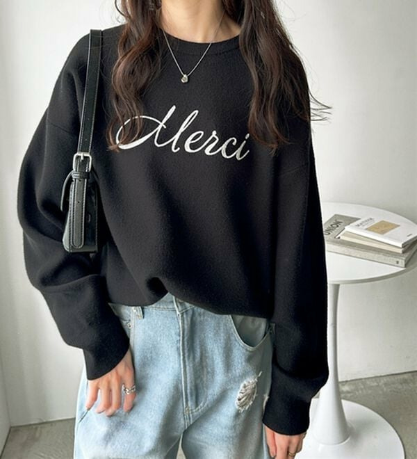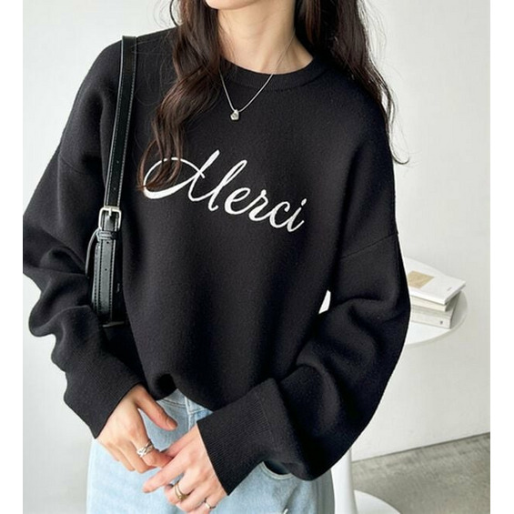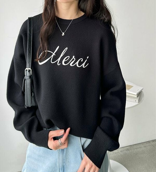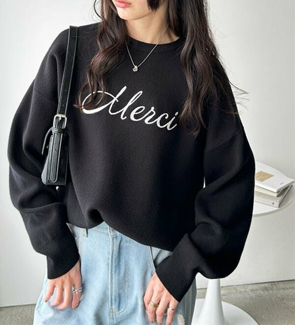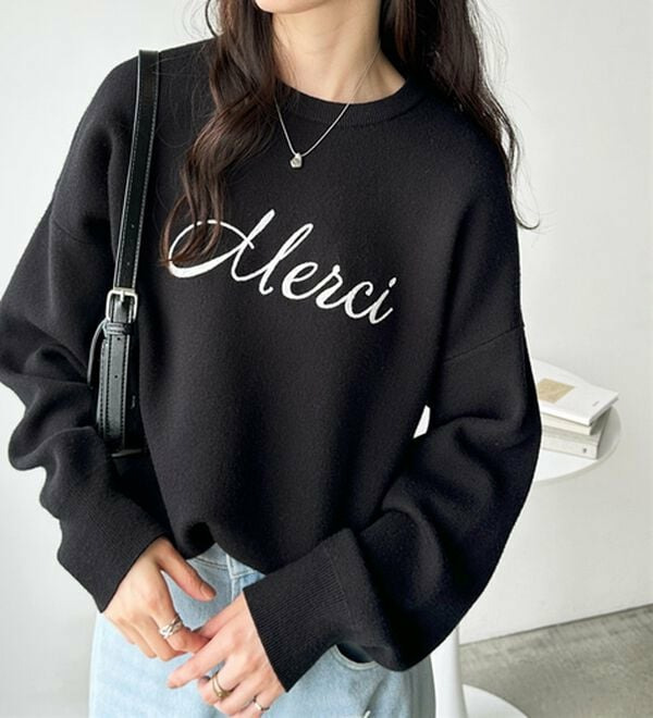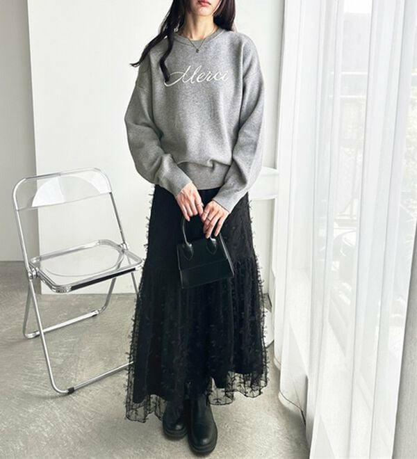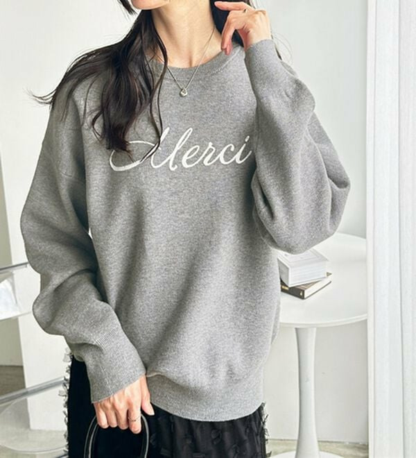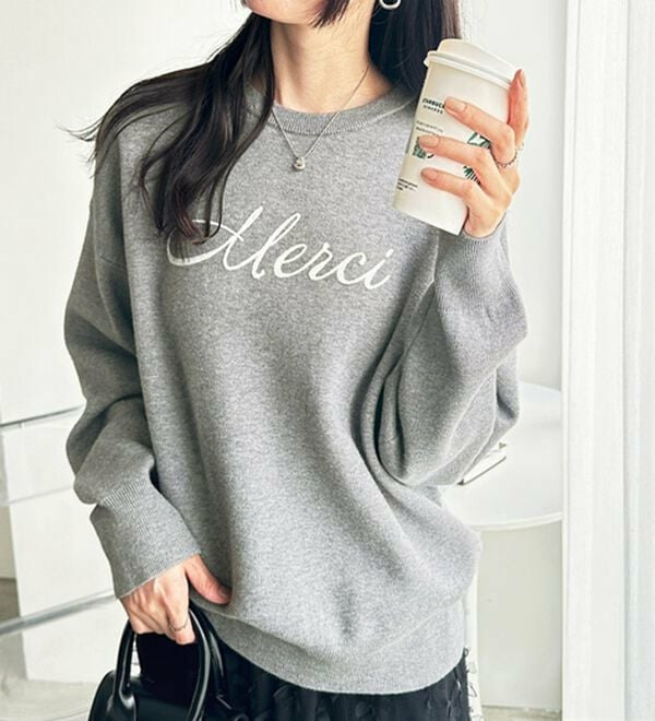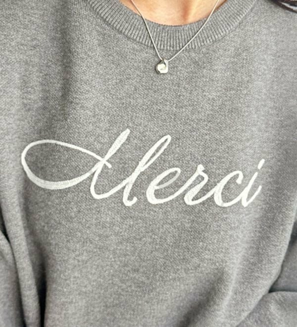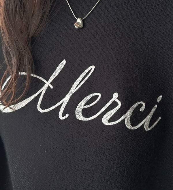 ○「Merci」のチェーン刺しゅうがアクセント