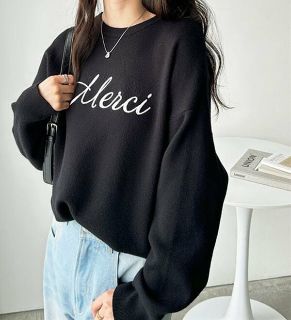 繊細な曲線で描いた「Merci」のロゴで、カジュアルすぎない印象に仕上げました。