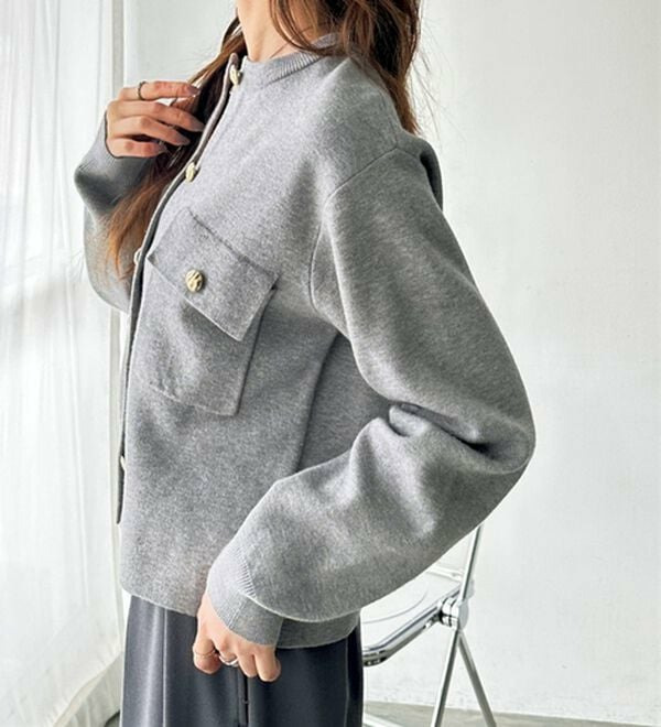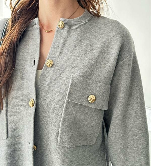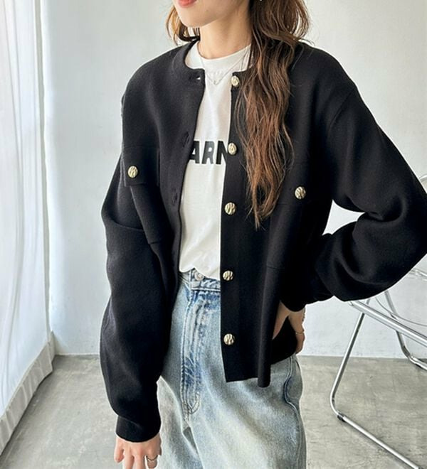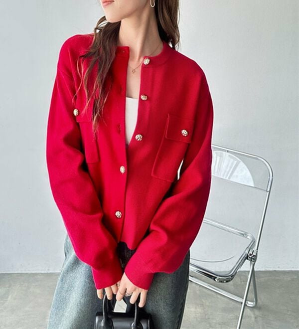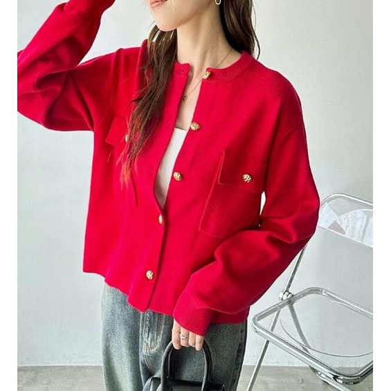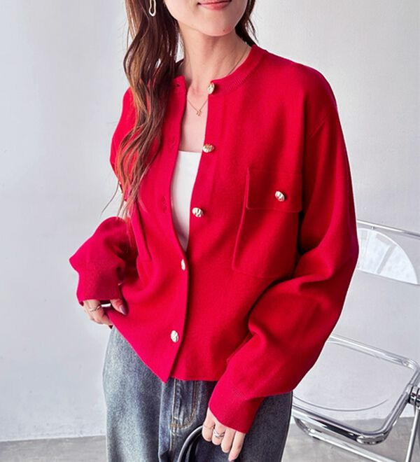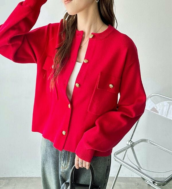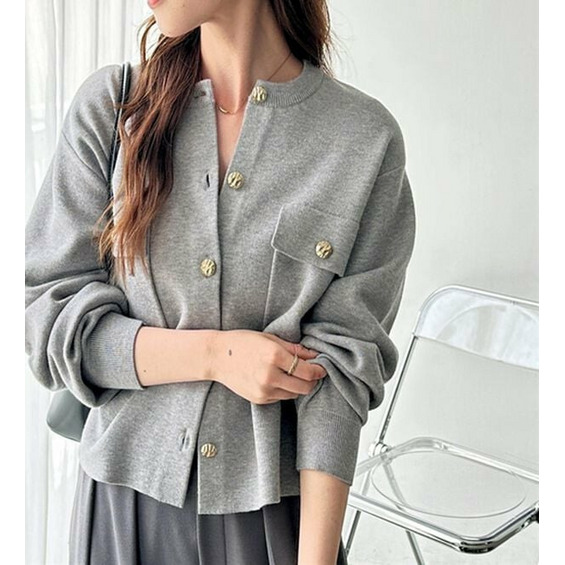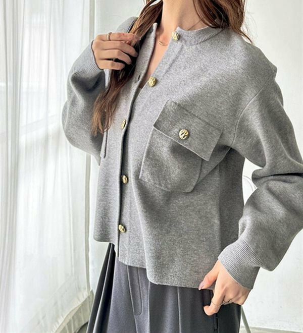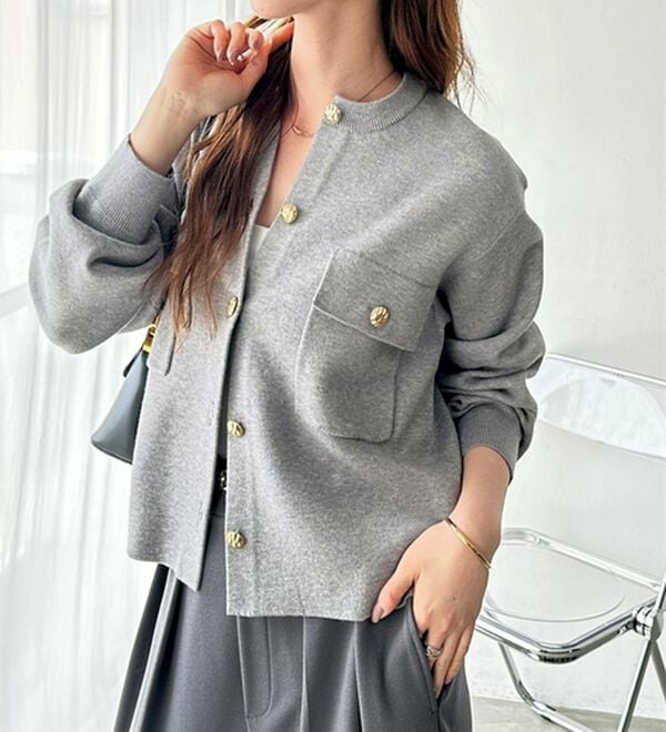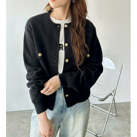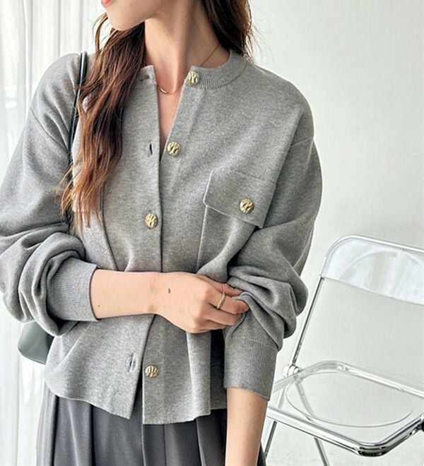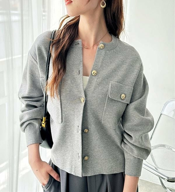 ゴールド調ボタンがアクセント!ジャケット使いやプルオーバーとして着られる優秀なカーディガン。