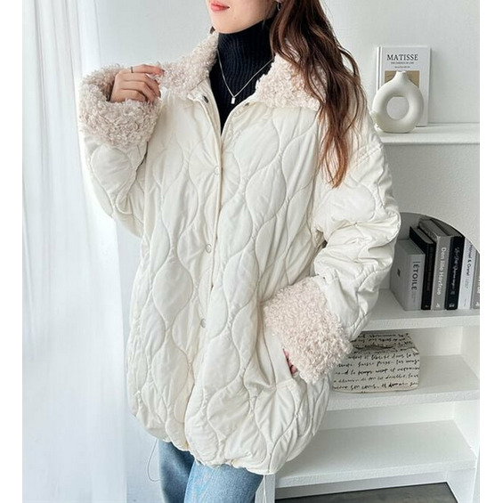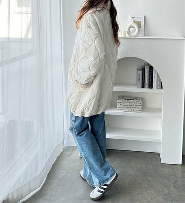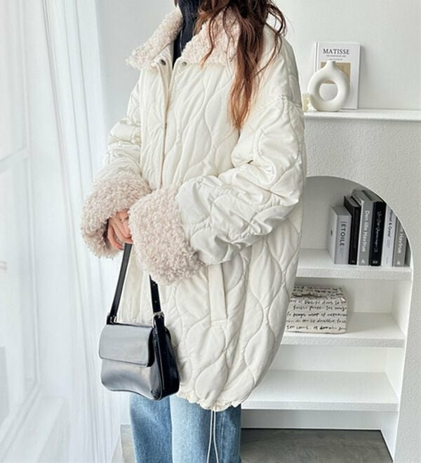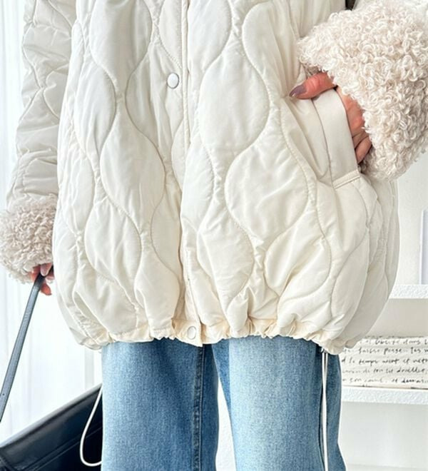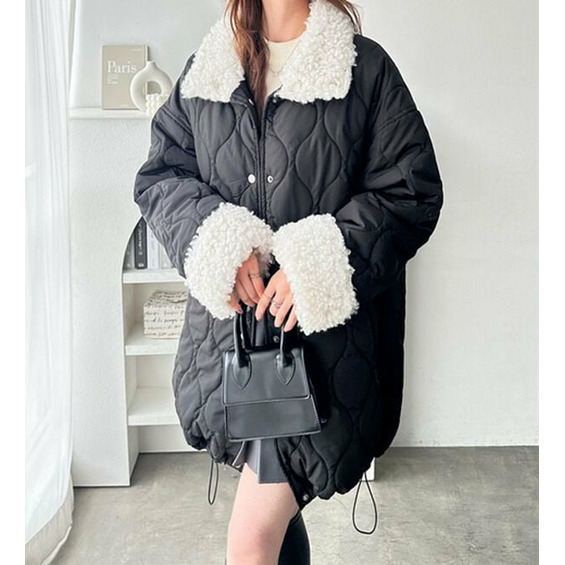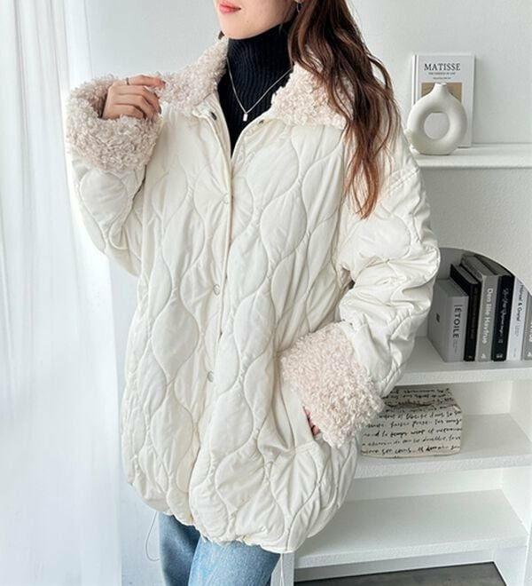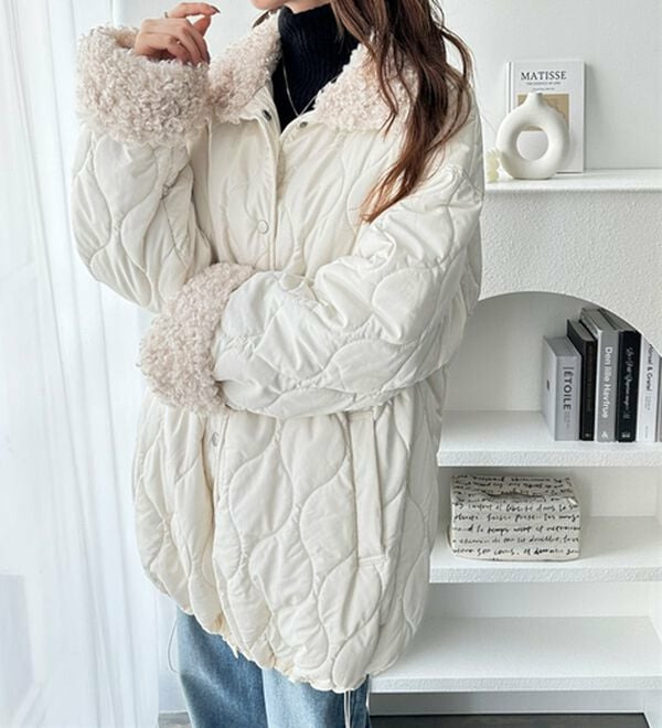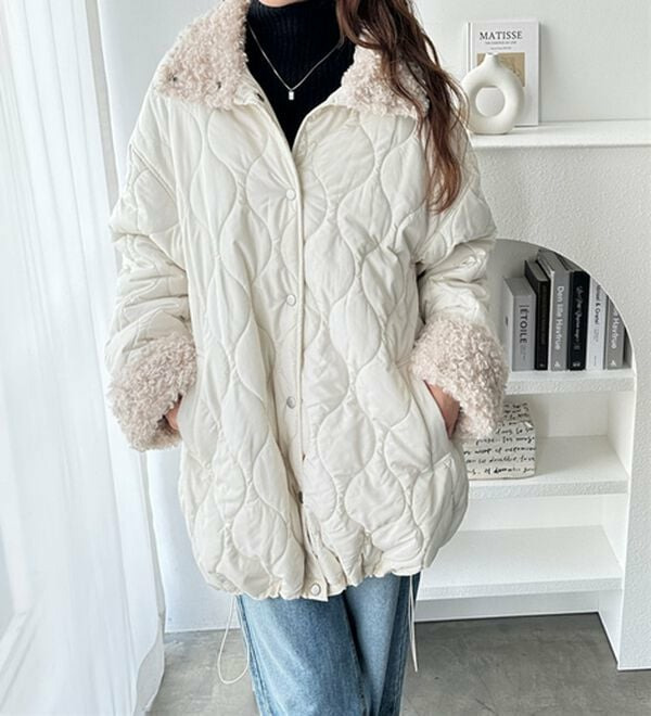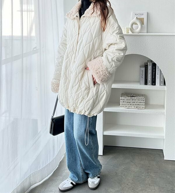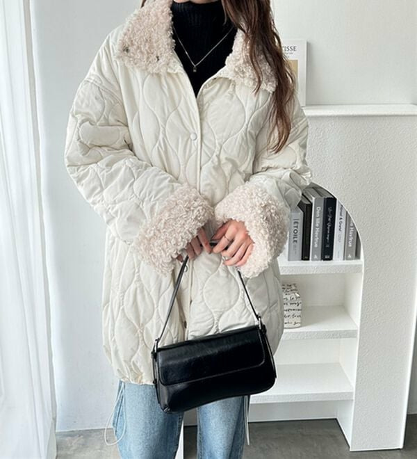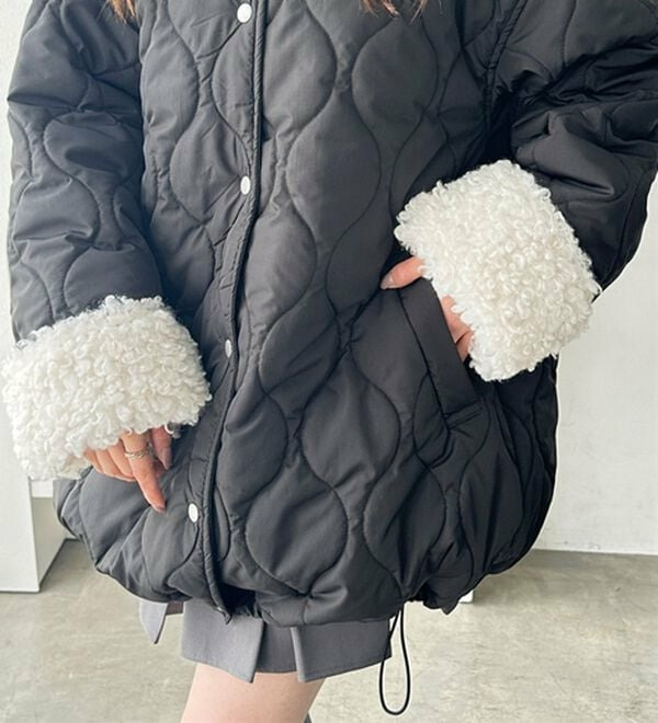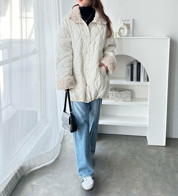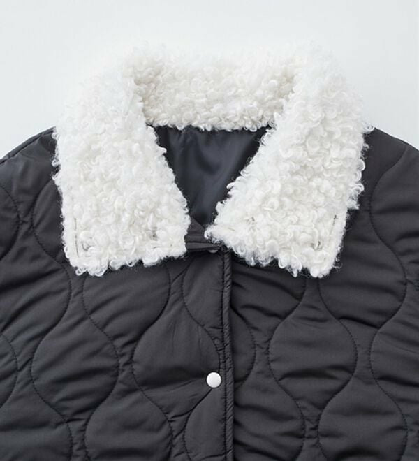 衿&袖口ボアでフェミニンを落とし込んだキルティングコート
