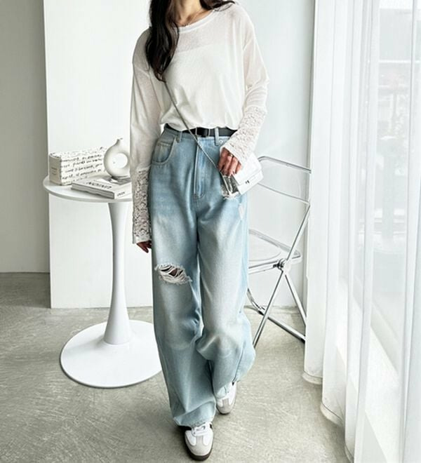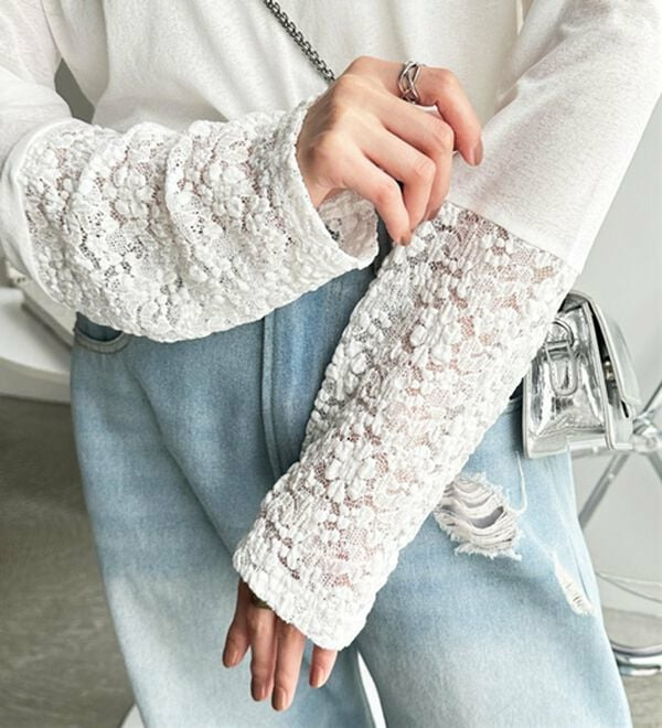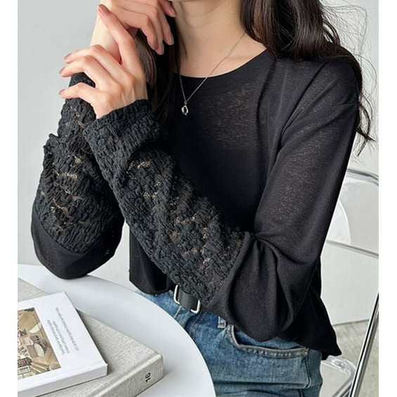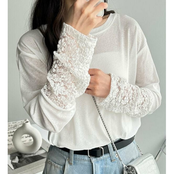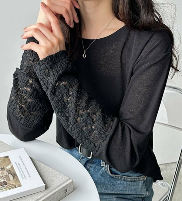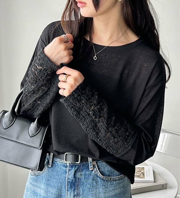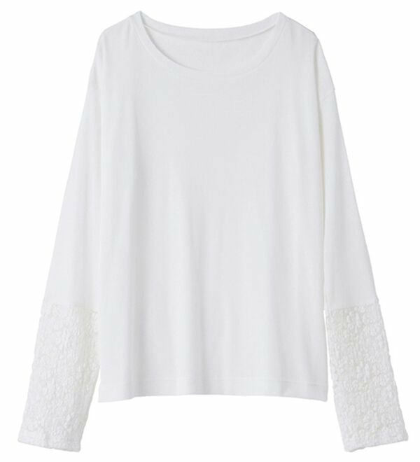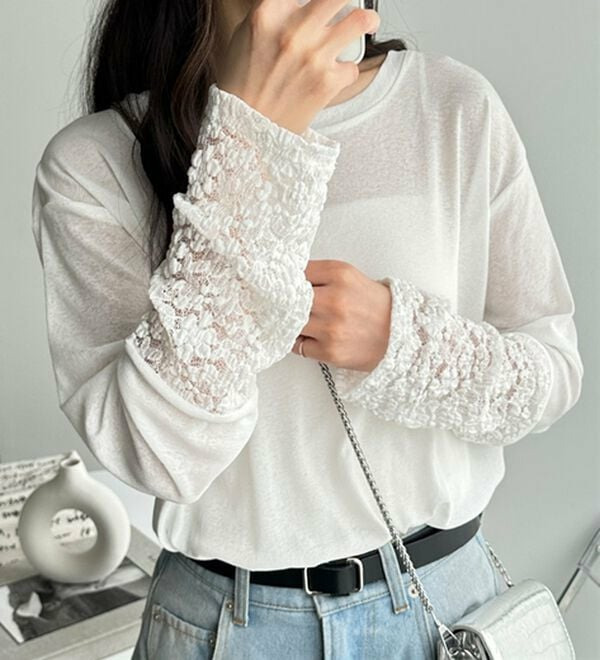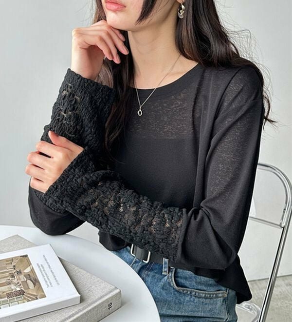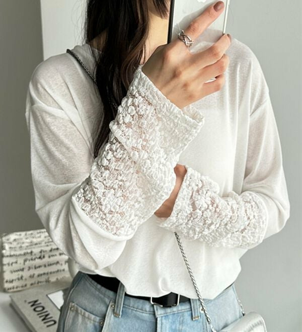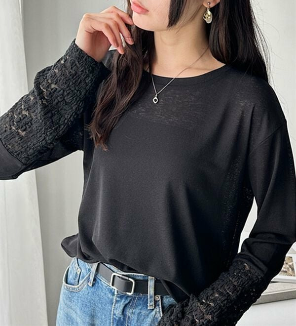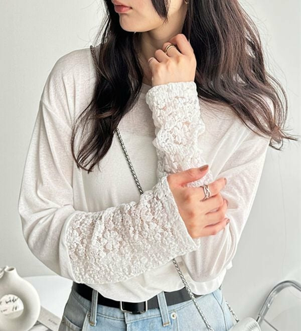 袖口のレースが上品な印象をプラスする優秀シアートップス
