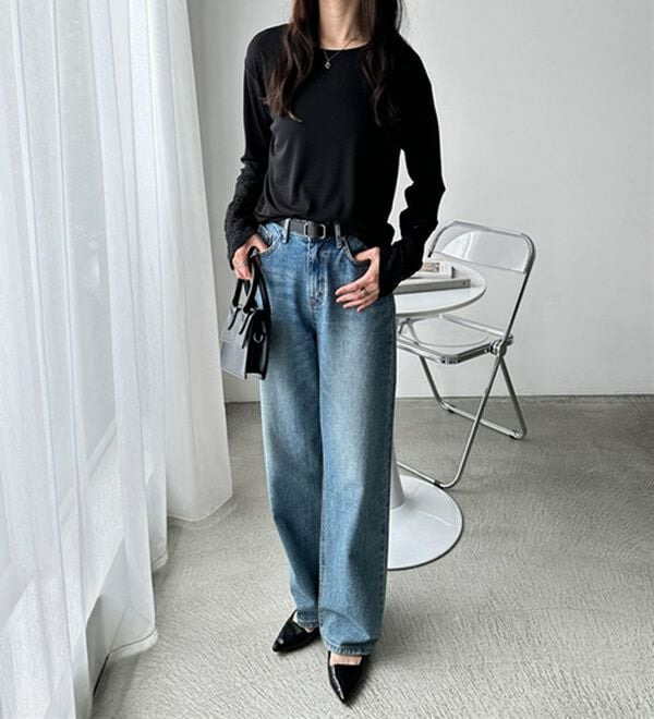 ボトムは、ゆるっとしたシルエットなので、定番のデニムやスラックス、タイトスカートと相性抜群!