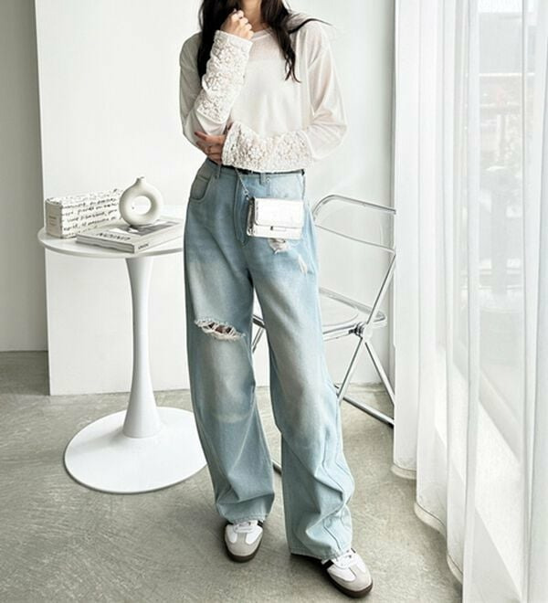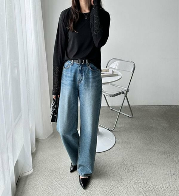 レース素材の切り替えデザインを施し、周りと差が付くこなれた雰囲気に!