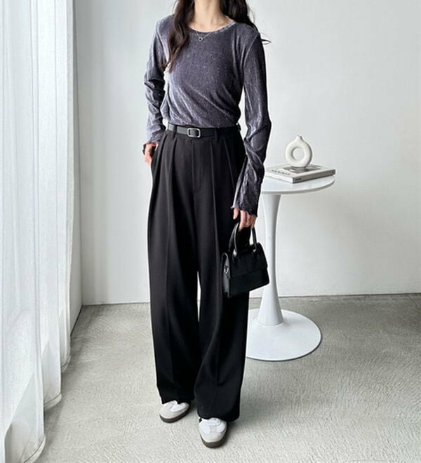 ベロアプリーツ素材が旬コーデに利く優秀カットソー