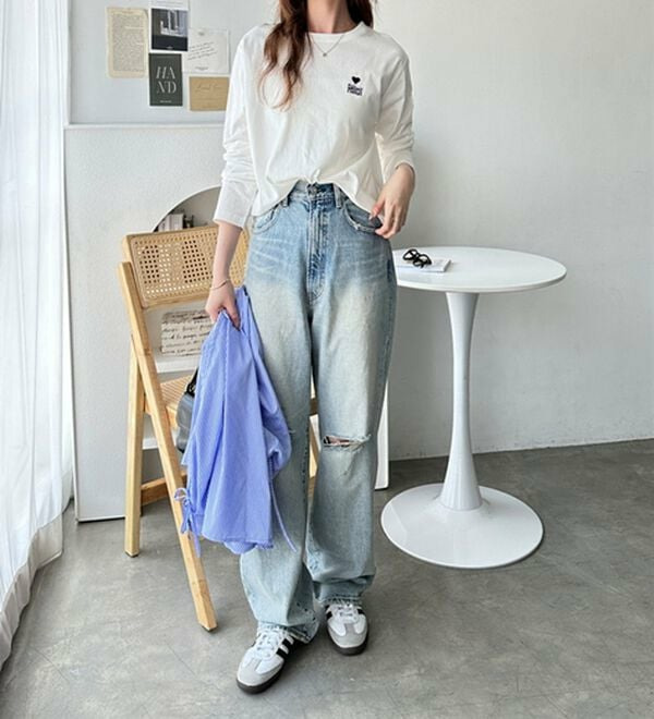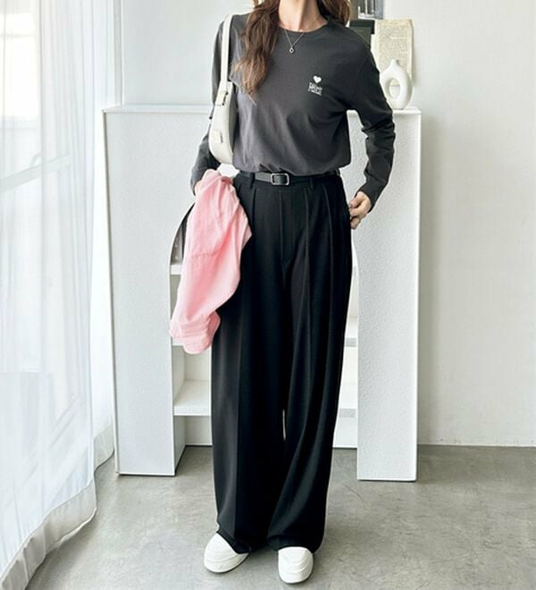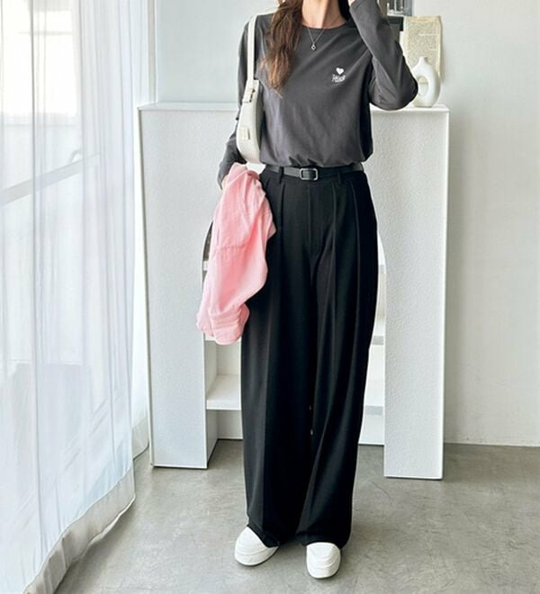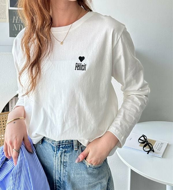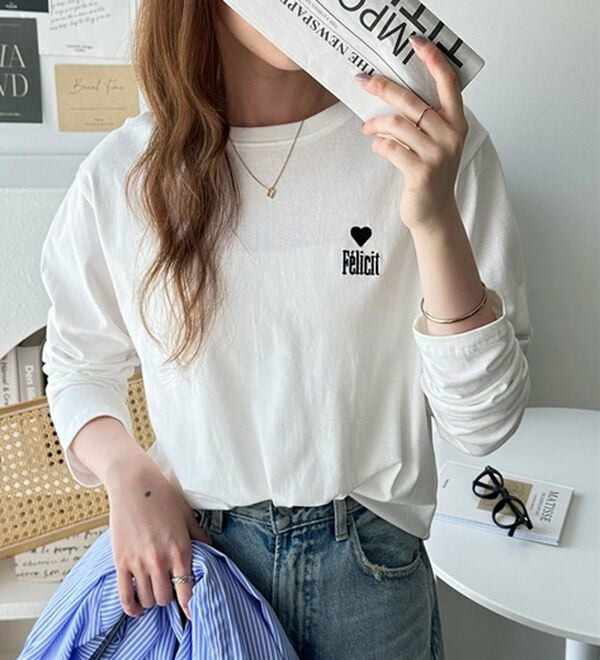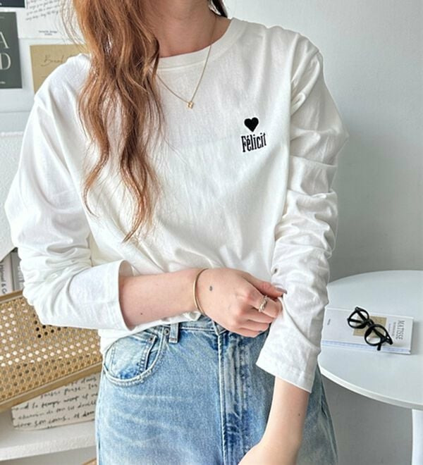 胸元にワンポイント刺繍が施されたシンプルなデザインなので、どんなボトムとも相性抜群!