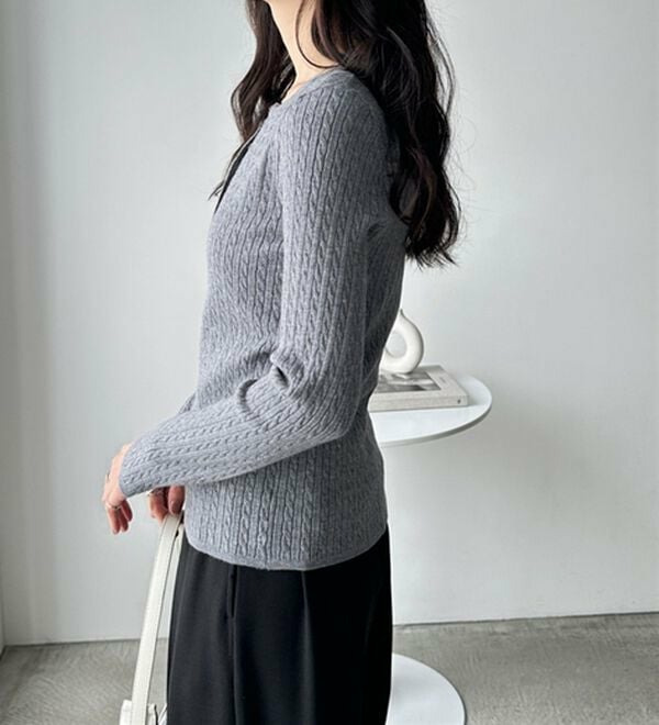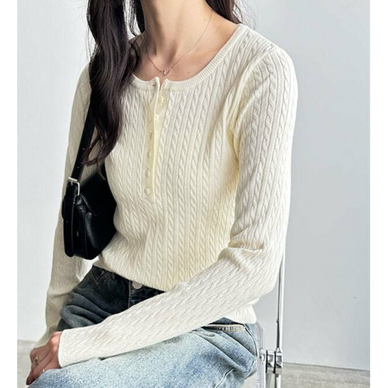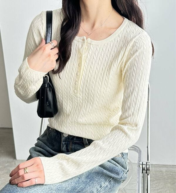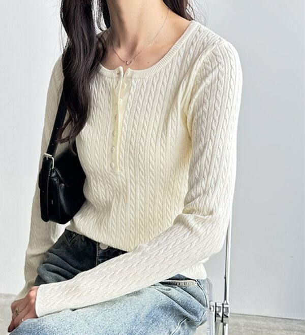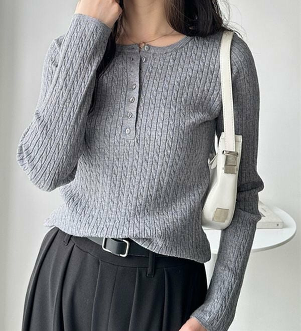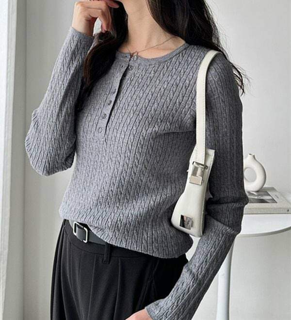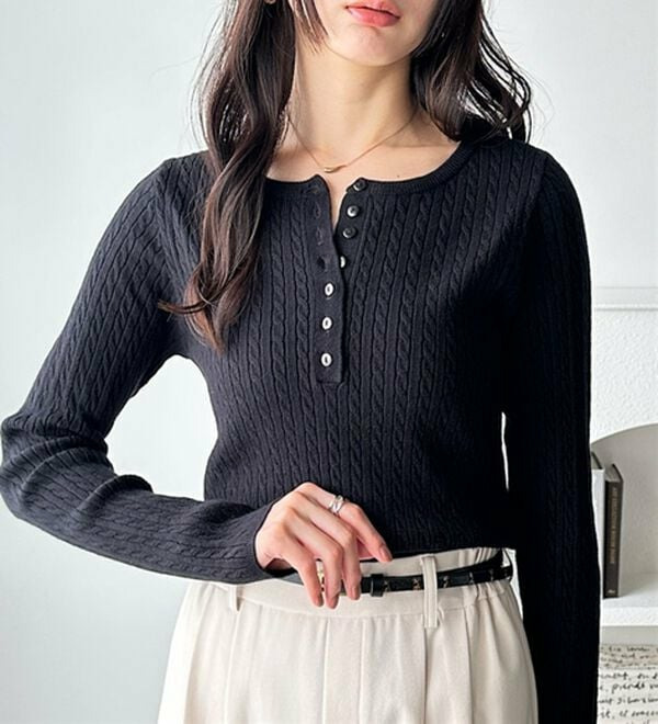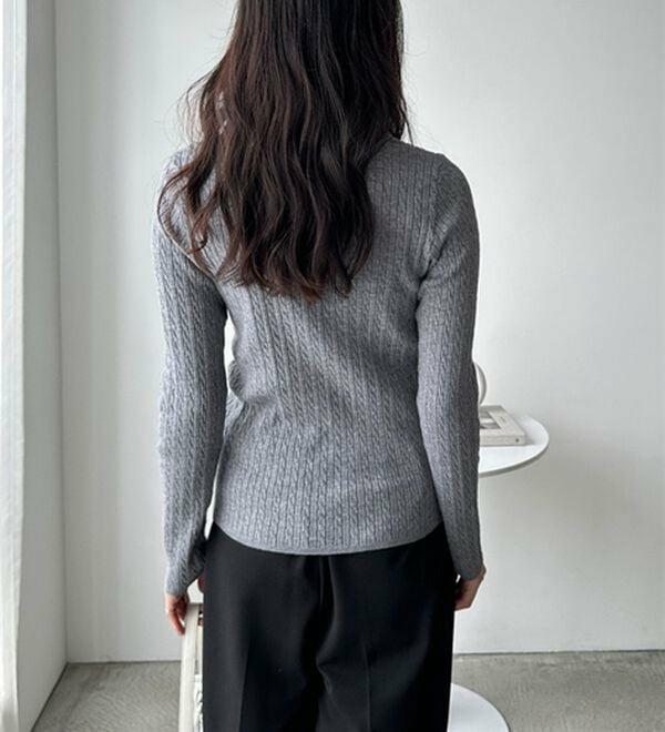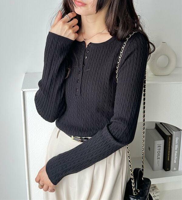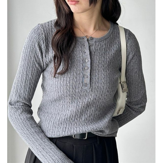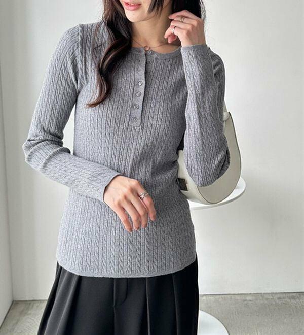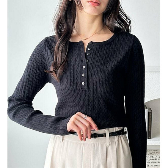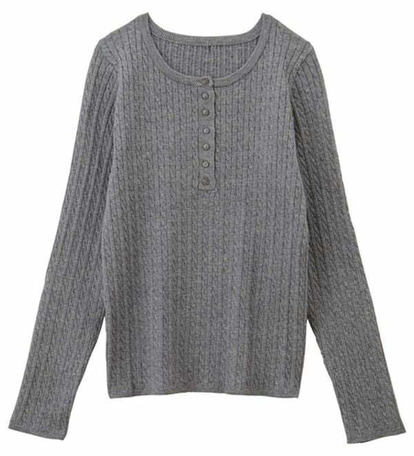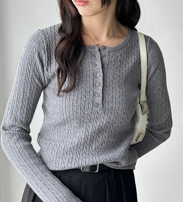 ヘンリーネック×ミニケーブルでトレンド要素満載のリブニット。