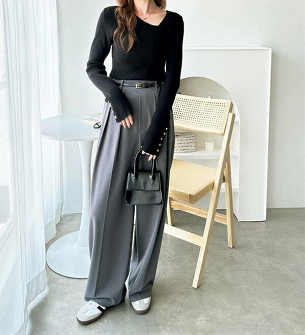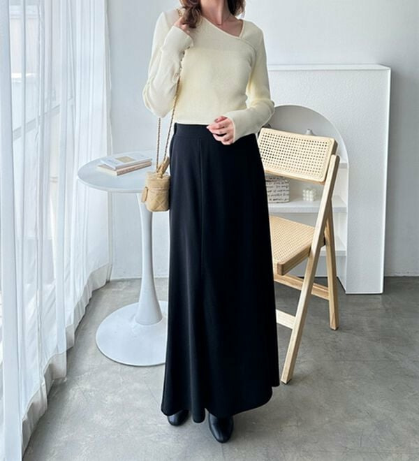 シンプルなデザインながら、アシメネックで華奢見え&デコルテの美しさを引き立てます。