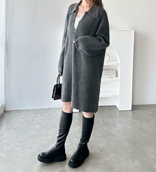 ロングブーツと合わせた女性らしいコーデがおすすめです。