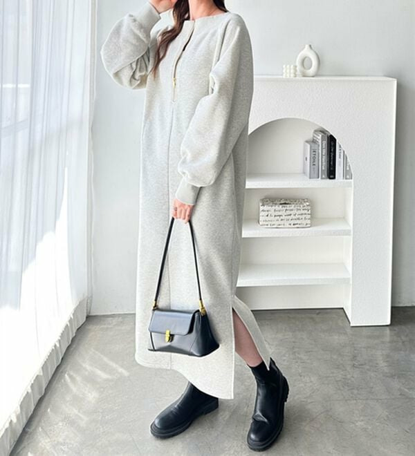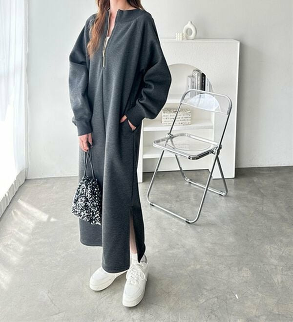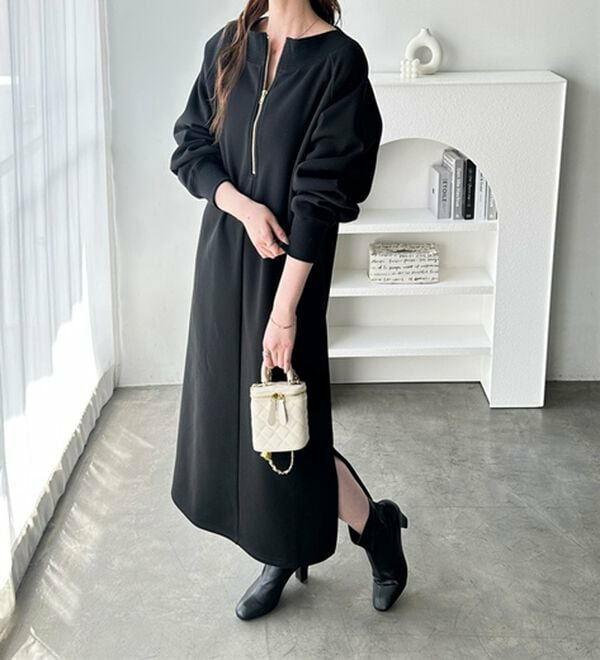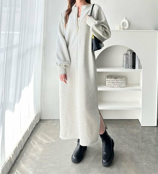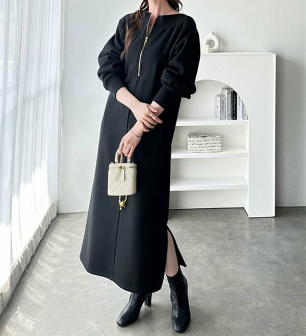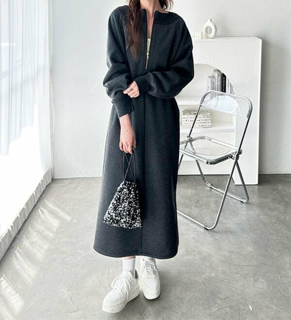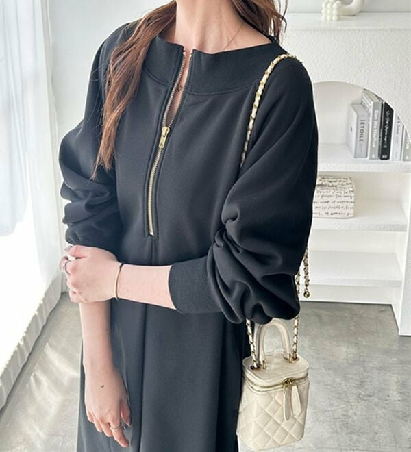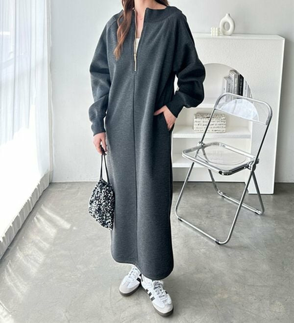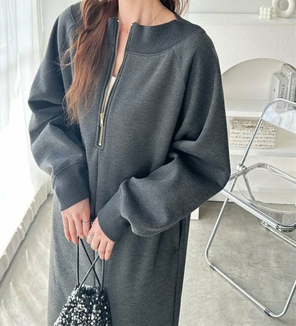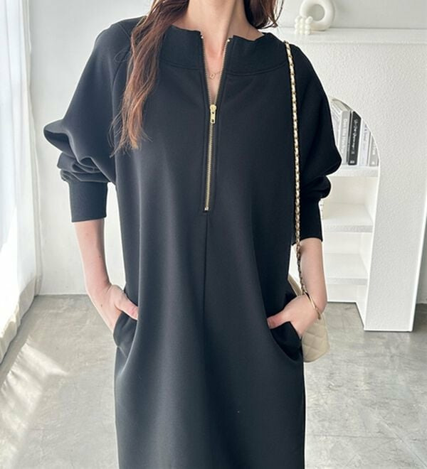 〇大人っぽい印象をプラスするハーフジップデザイン