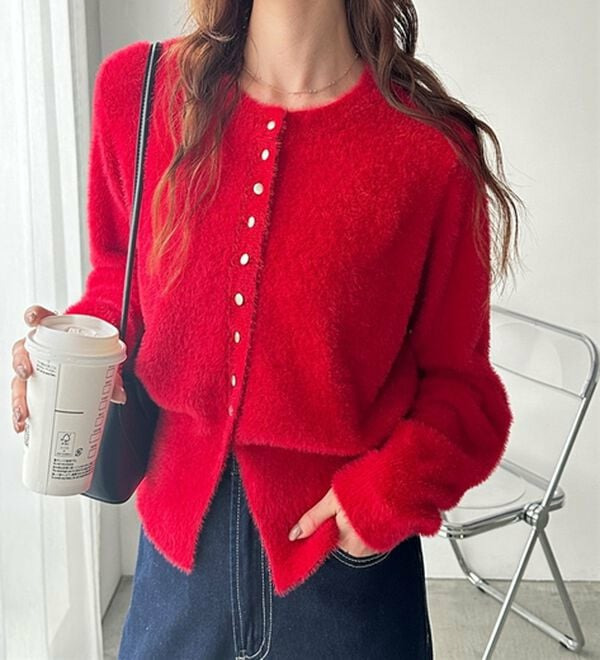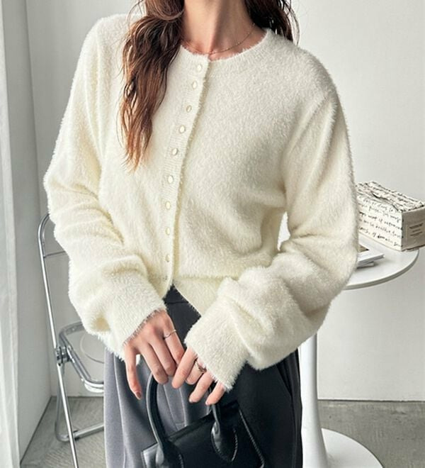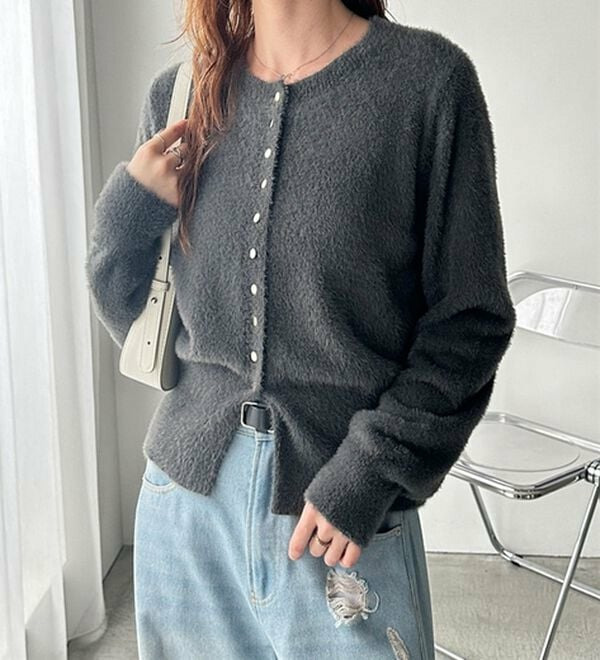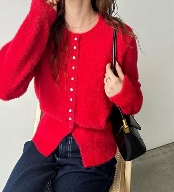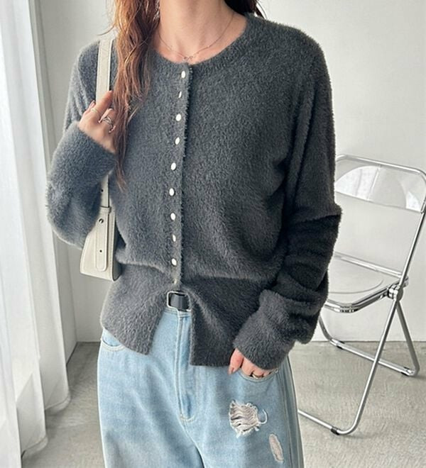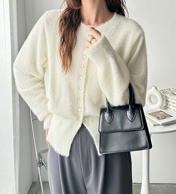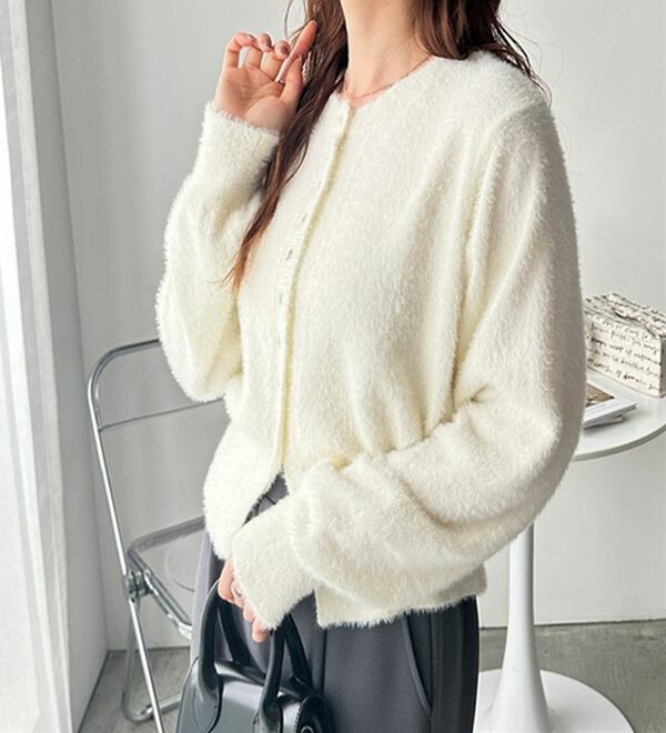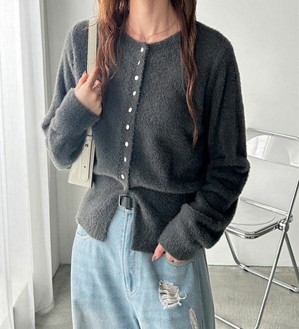ふんわりとしたシャギー×多ボタンでトレンド感たっぷりカーディガン