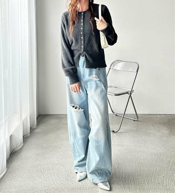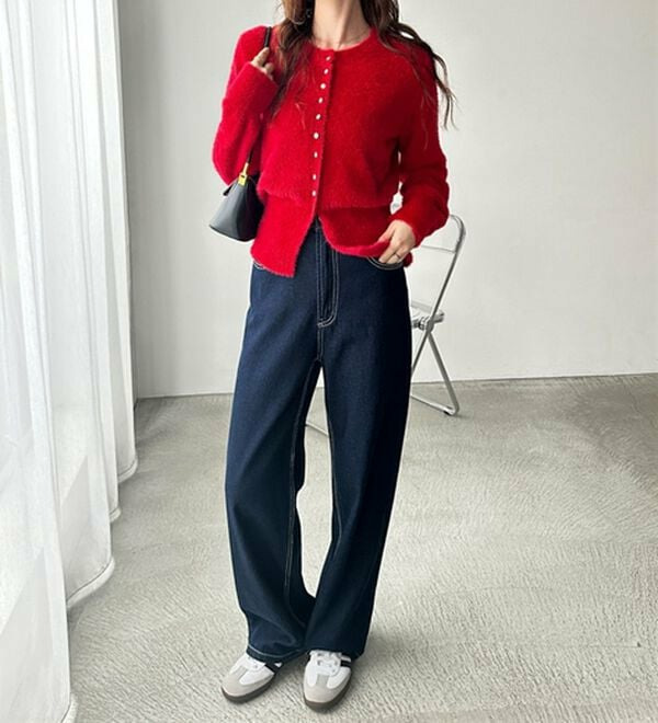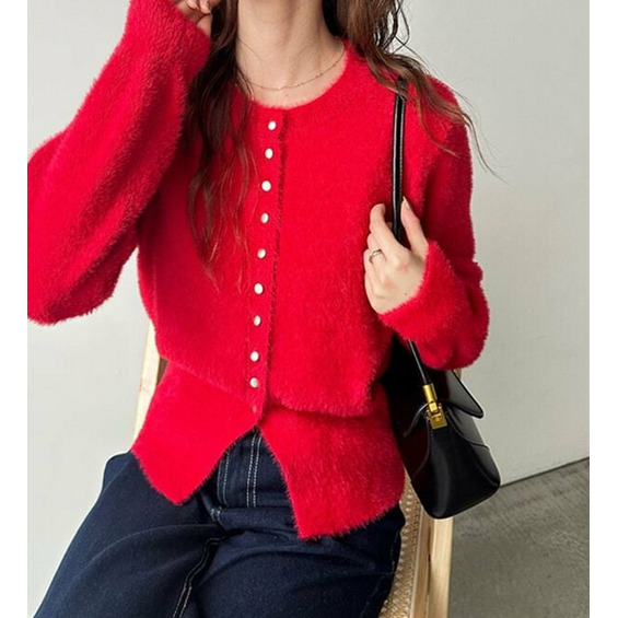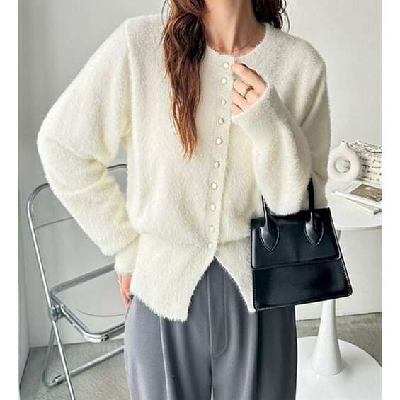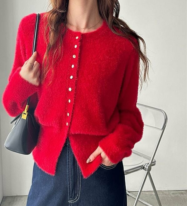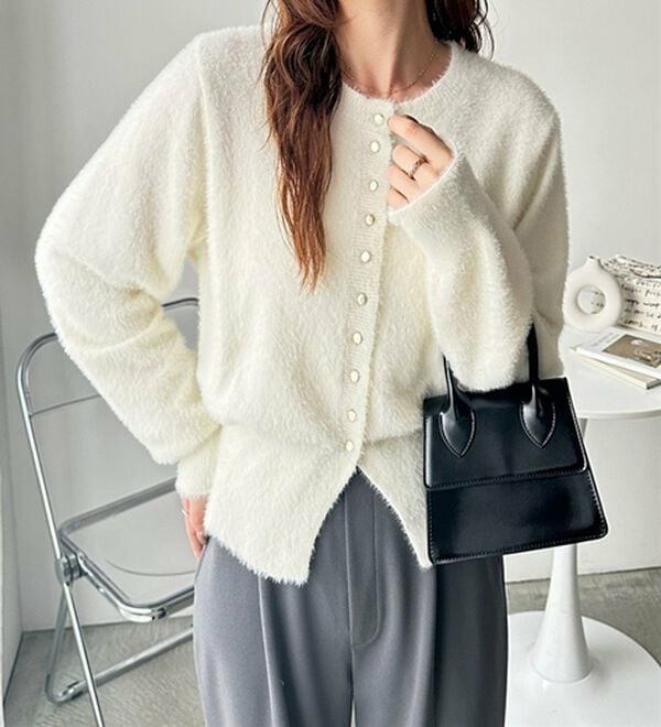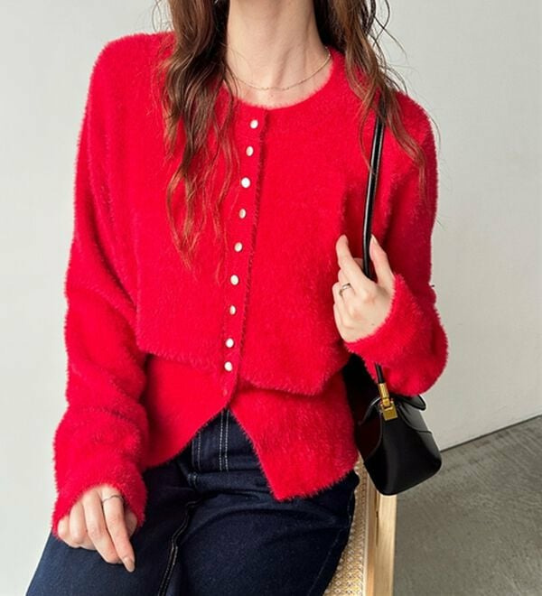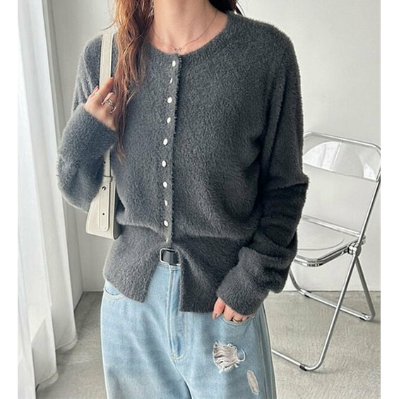 ふんわりとしたシャギー×多ボタンでトレンド感たっぷりカーディガン