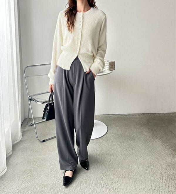 きれいめなスラックスやタイトスカートと合わせると上品な着こなしが叶います。