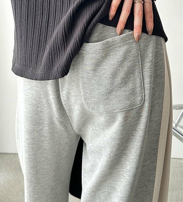 サイドのタックデザイン部分を配色で大胆に切り替えたスウェットパンツ。