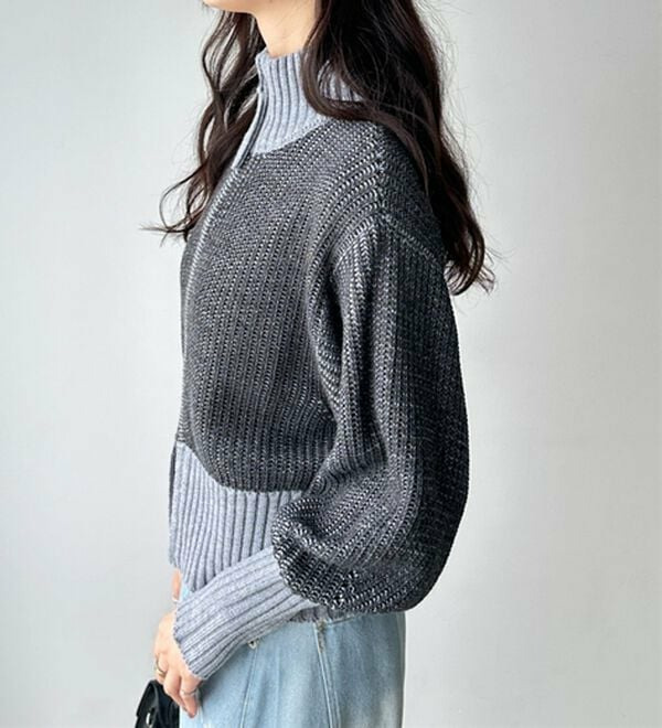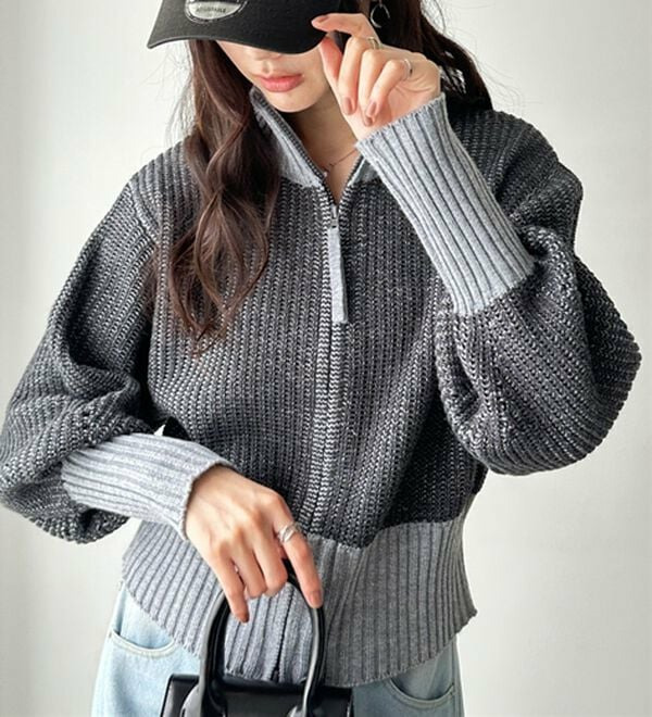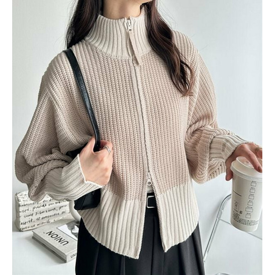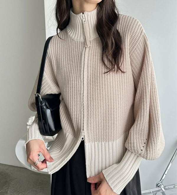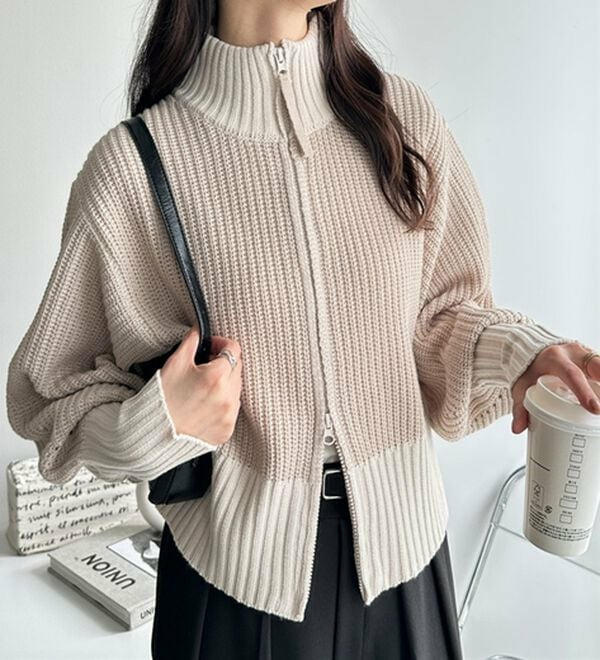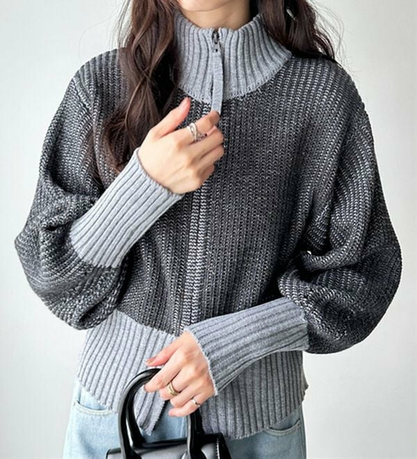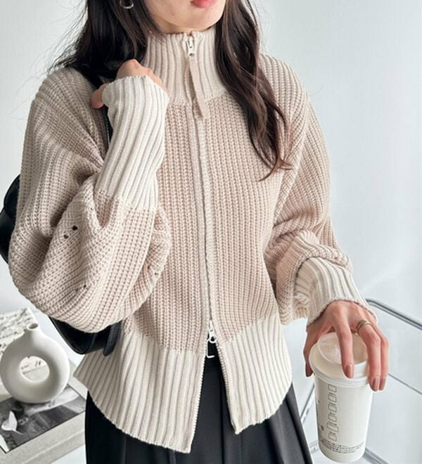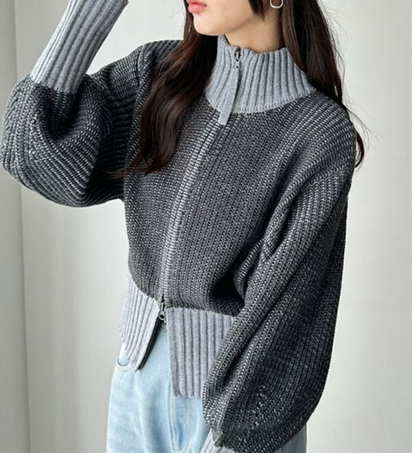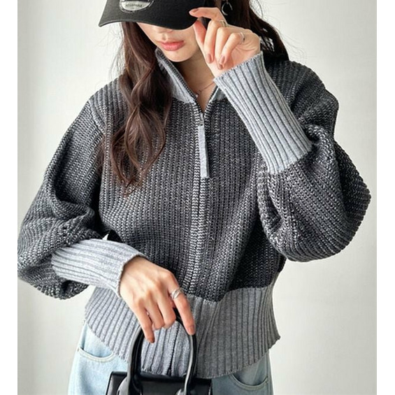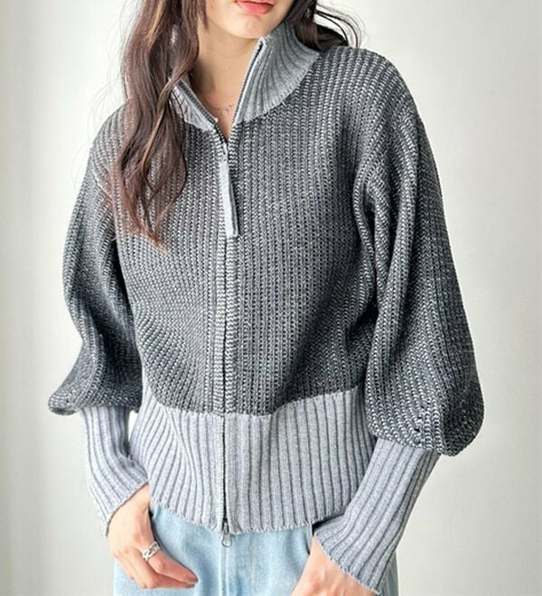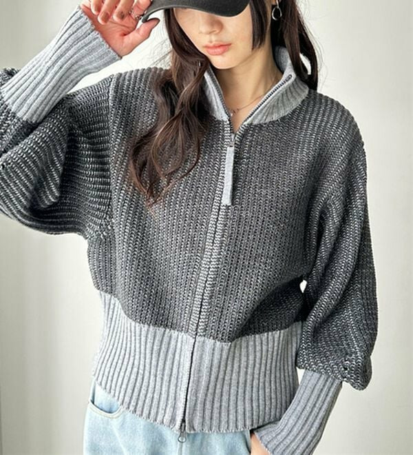 《FIRSTMOODコラボ》配色ダブルジップニットカーディガン