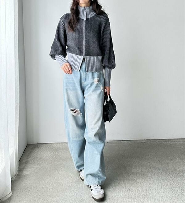 トレンドのダブルジップ×ショート丈で色々な着こなしを楽しめます。